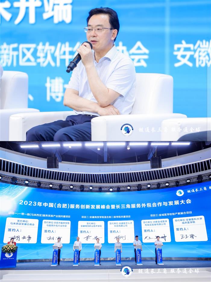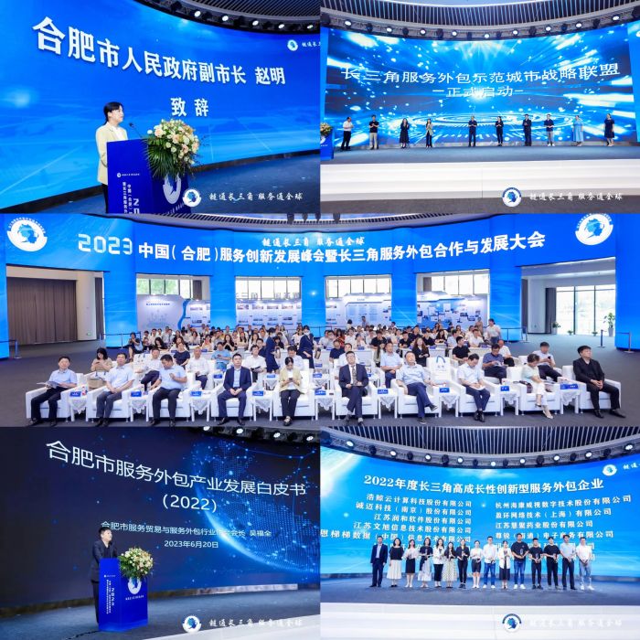 6月20日,2023年中国(合肥)服务创新发展峰会暨长三角服务外包合作与发展大会在合肥举办。此次峰会由合肥市商务局、合肥市投资促进局、合肥高新区管委会、长三角服务外包示范城市战略联盟、安徽商贸职业技术学院、合肥职业技术学院主办,上海市服务外包企业协会、上海市浦东新区软件行业协会、南京服务贸易协会、杭州服务贸易投资促进会、宁波市服务外包协会、南通市服务贸易企业协会、镇江市服务外包协会、无锡服务贸易协会、苏州工业园区服务贸易协会、徐州市服务外包协会协办。