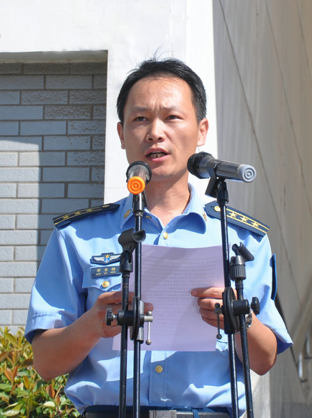 邓华锋代表承训部队作了讲话,他表示全体教官将按照军训大纲要求开展军事训练,坚持安全第一、严格要求、训育结合、重在育人,确保顺利完成2013级新生军训工作任务。
