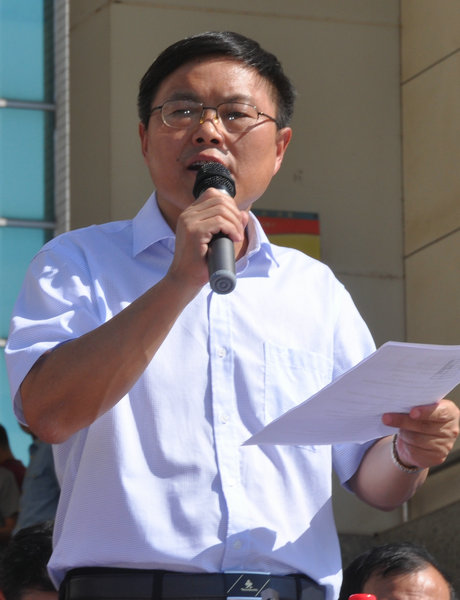 9月17日上午, 2013级新生开学典礼暨军训动员大会在教学楼广场隆重举行。院领导章顺来、张光胜、杨文兰、朱光应、郑承志、王炜,军训团团长、94669部队政治部副主任邓华锋出席大会,相关职能部门负责人、各系党总支书记、新生辅导员、全体军训教官以及3580余名新生参加了大会。大会由党委副书记、纪委书记朱光应主持。