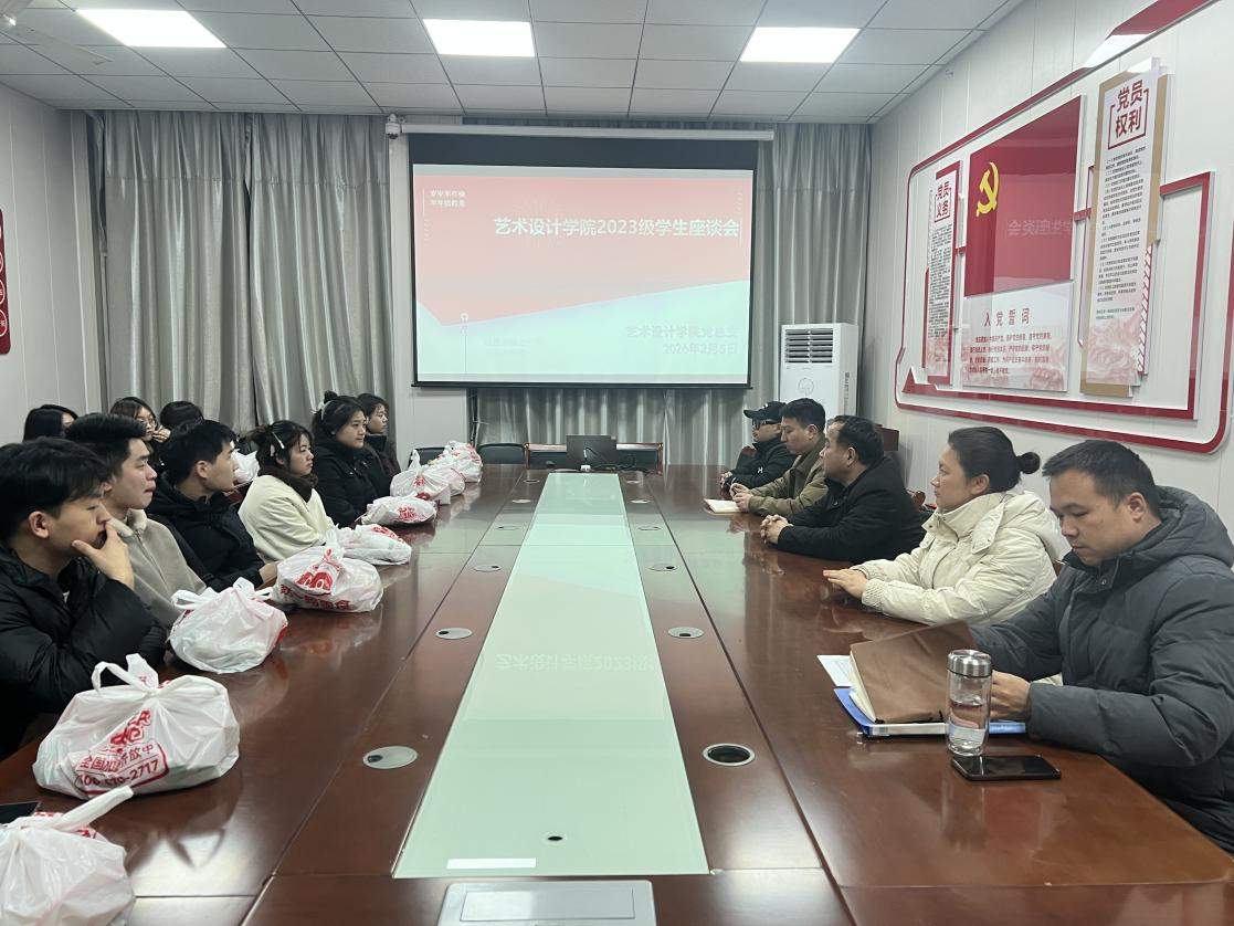 为传递学校关爱,促进毕业班实习学生安心实习,2月5日晚,艺术设计学院在学院会议室召开学院寒假留校实习学生座谈会,学院党总支书记韩飚和学生党支部书记、学生管理工作教师代表及学院全体毕业班留校学生参加了座谈会,座谈会由学院团学工作负责人汪级顺主持。