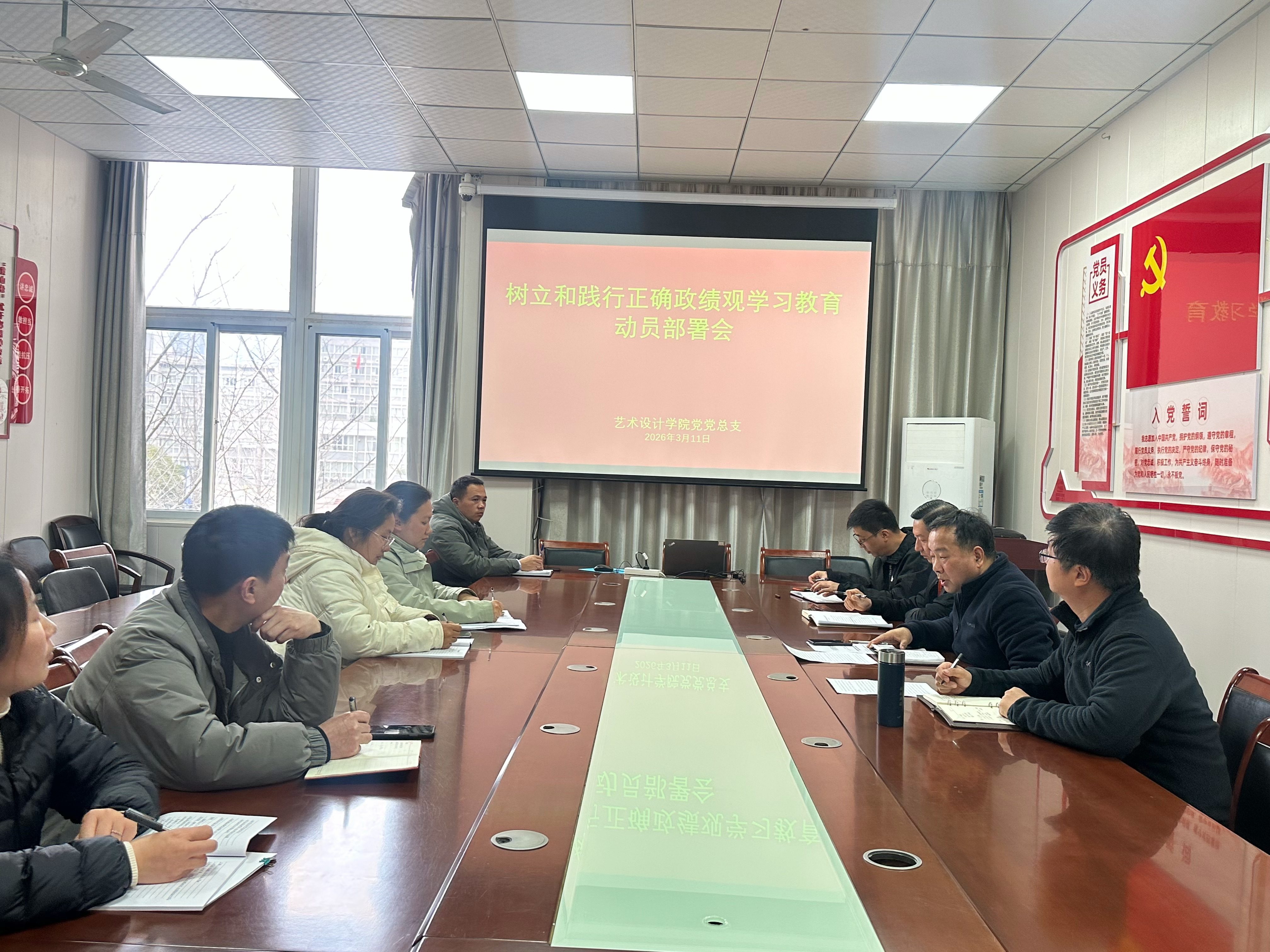3月11日下午,艺术设计学院召开树立和践行正确政绩观学习教育动员部署会,深入学习贯彻上级要求,就学院和各党支部开展学习教育进行动员部署。学院领导班子和各党支部委员参加会议,会议由党总支书记韩飚主持。