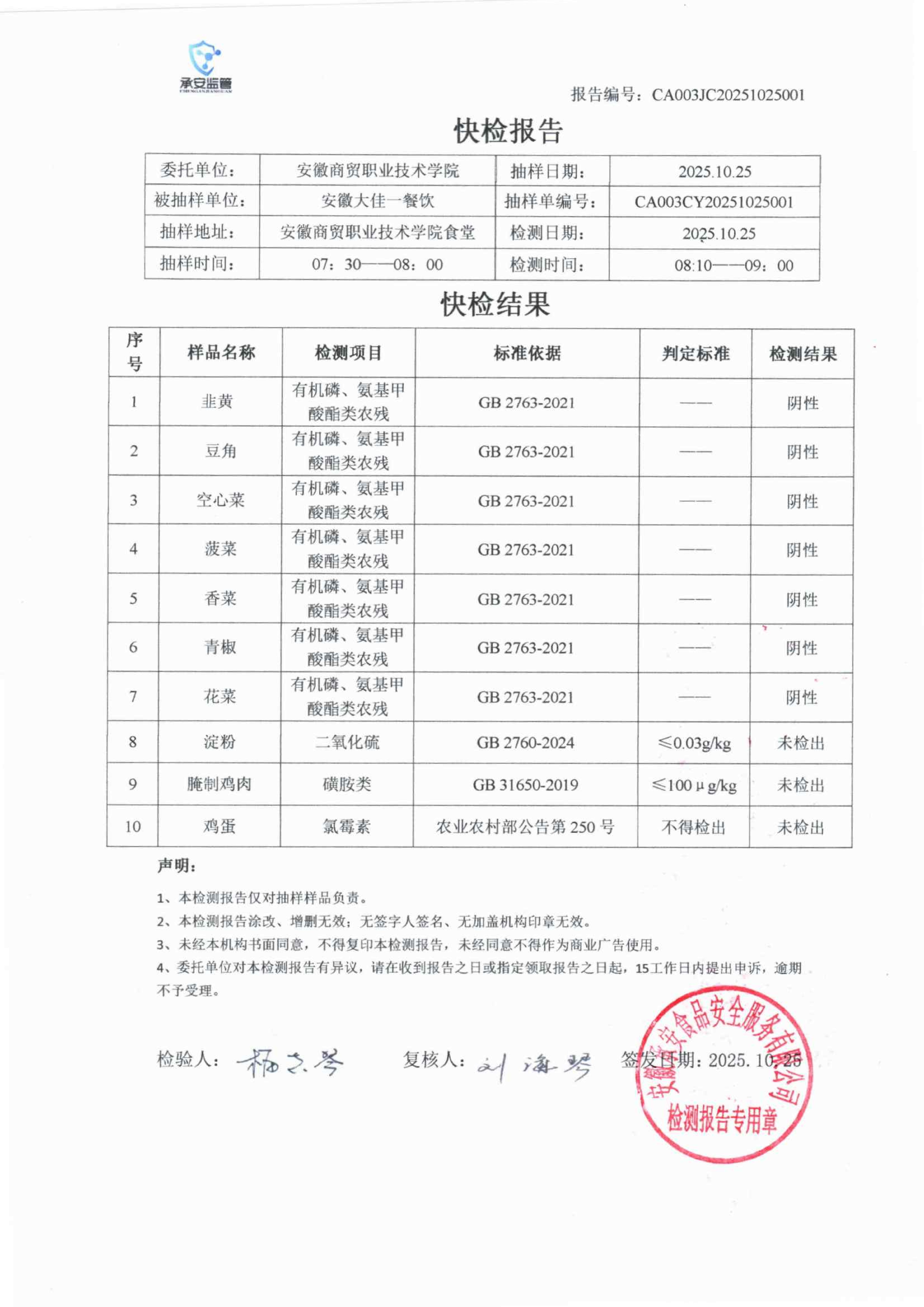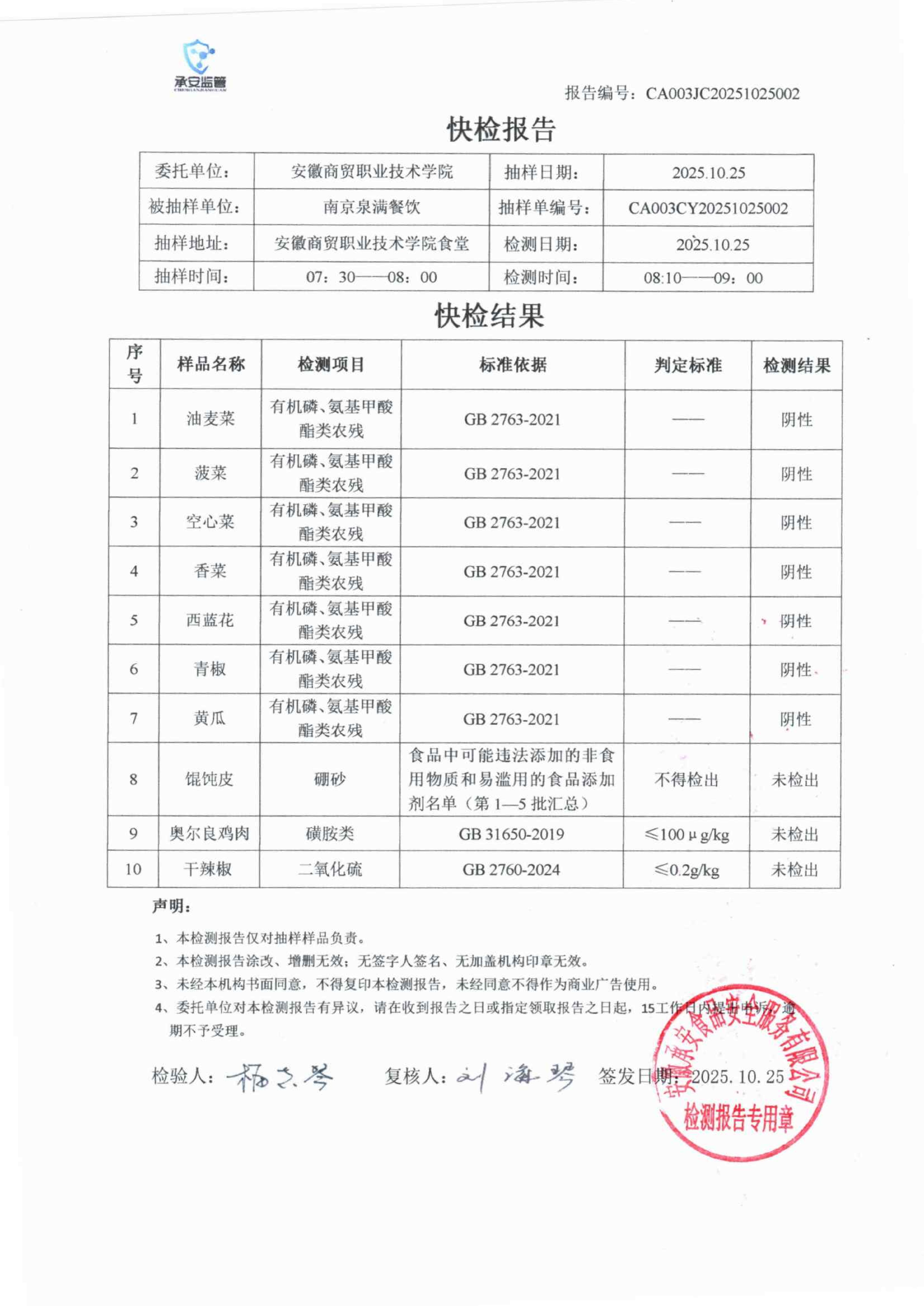 食堂食品原材料快检报告20251025