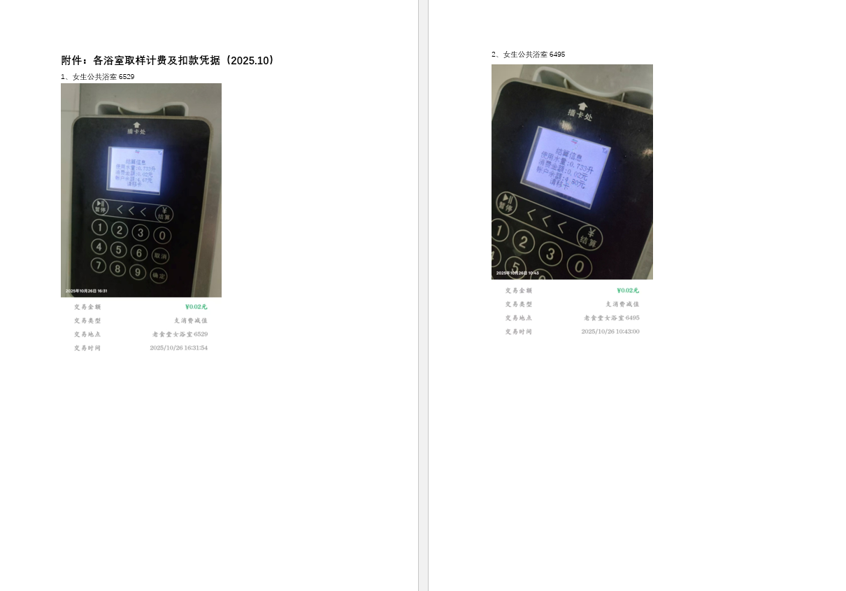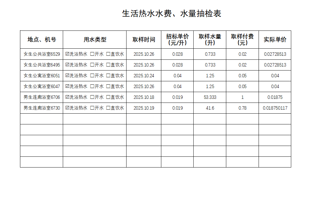 2025年10月生活热水水费、水量抽检