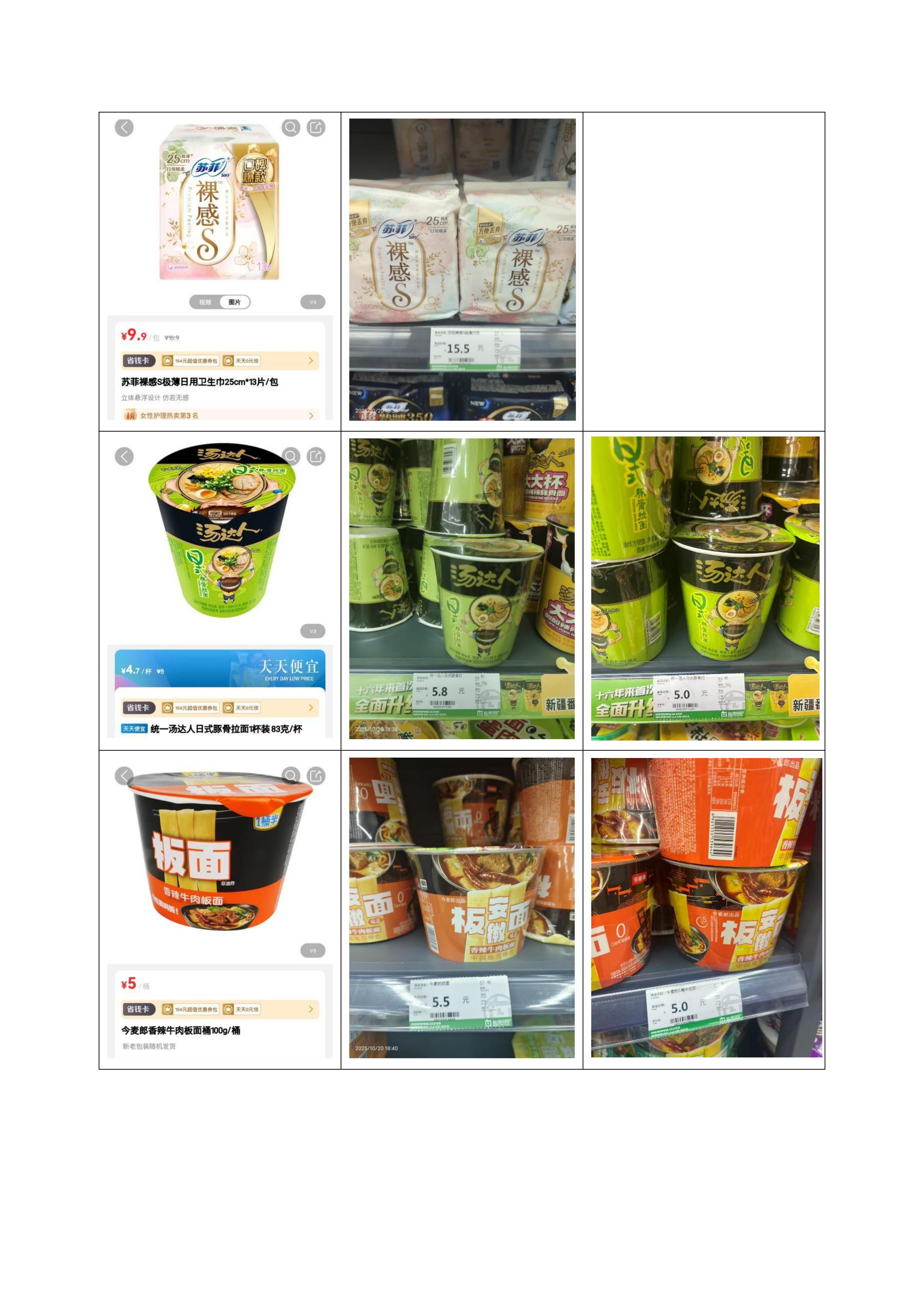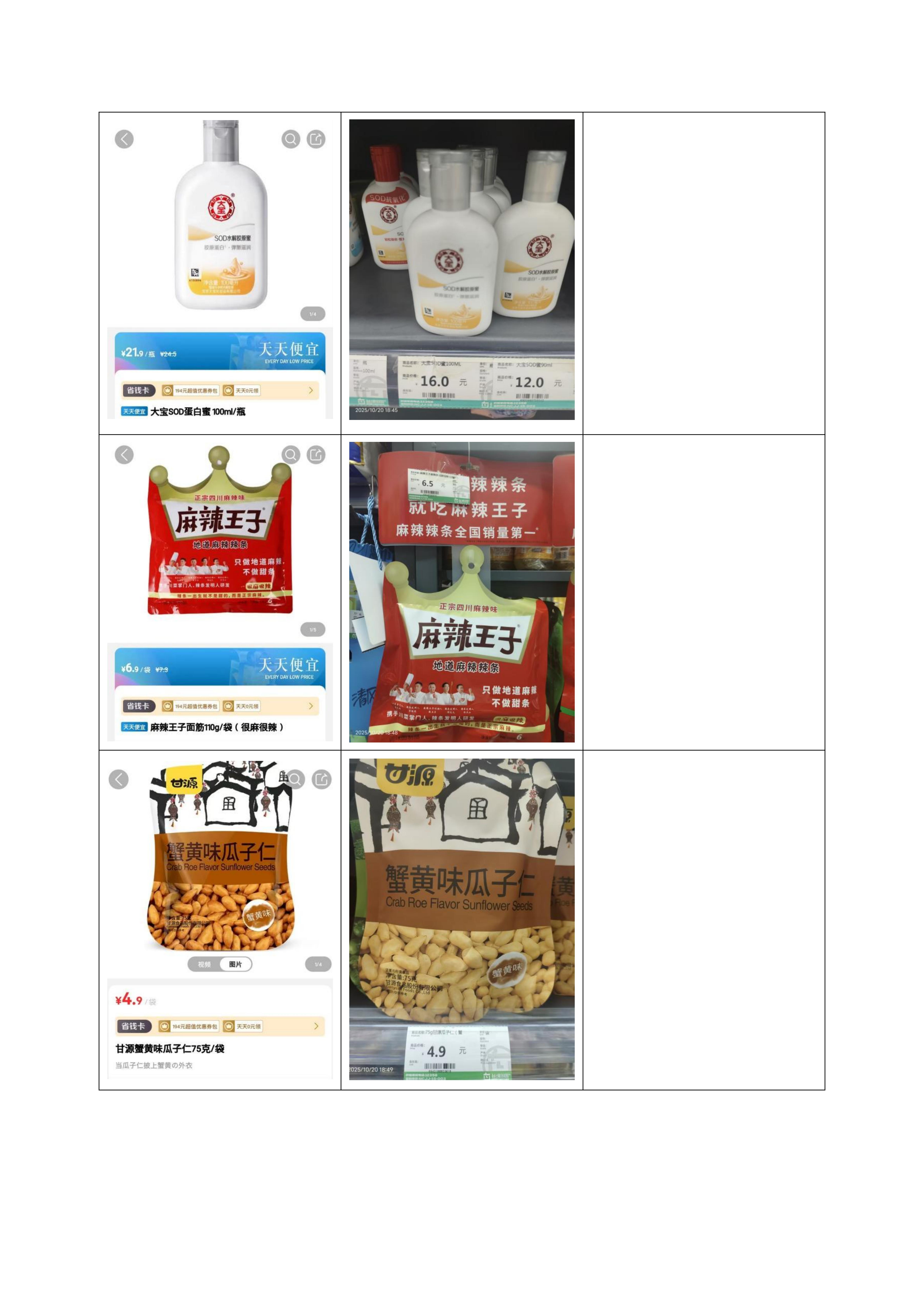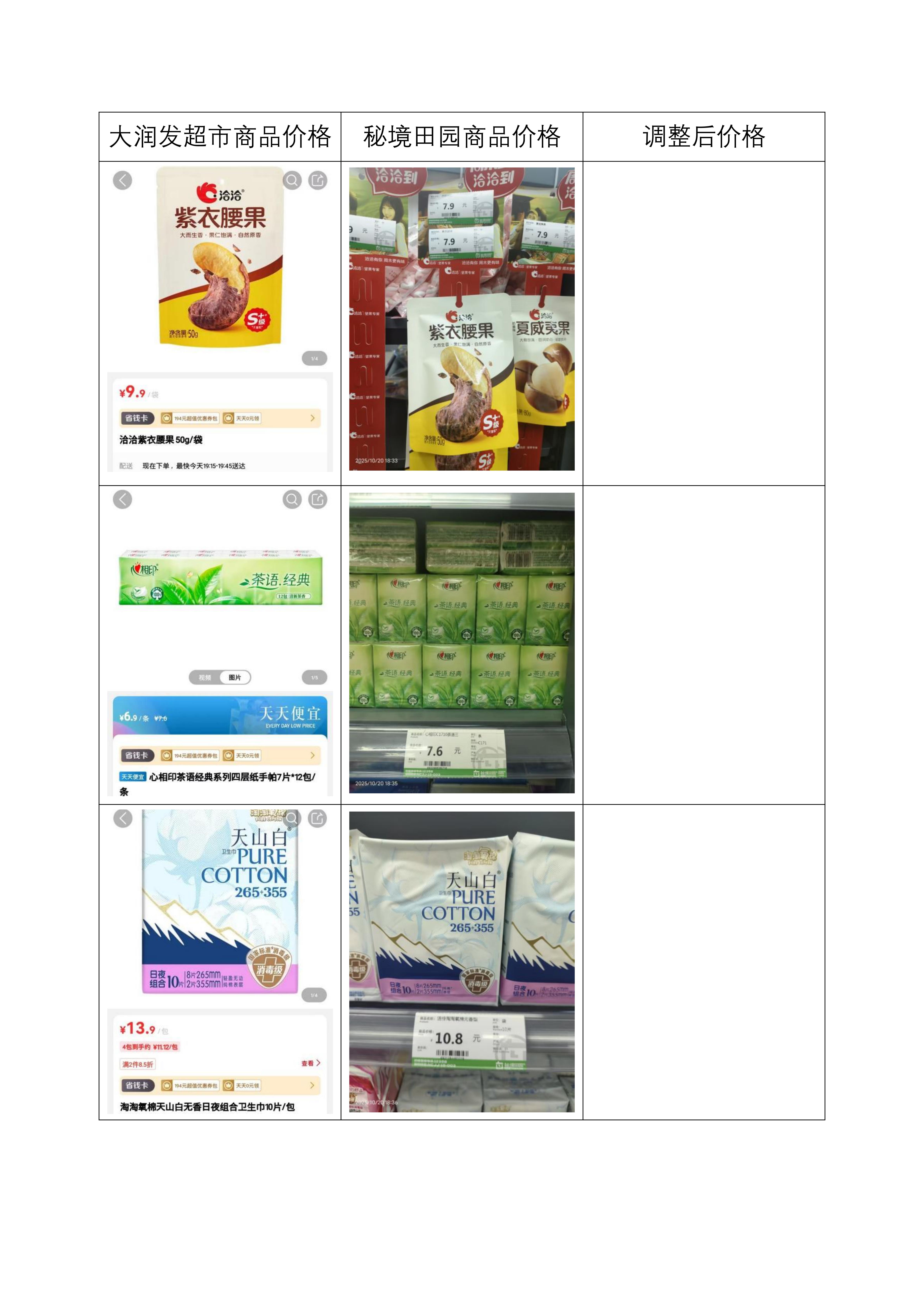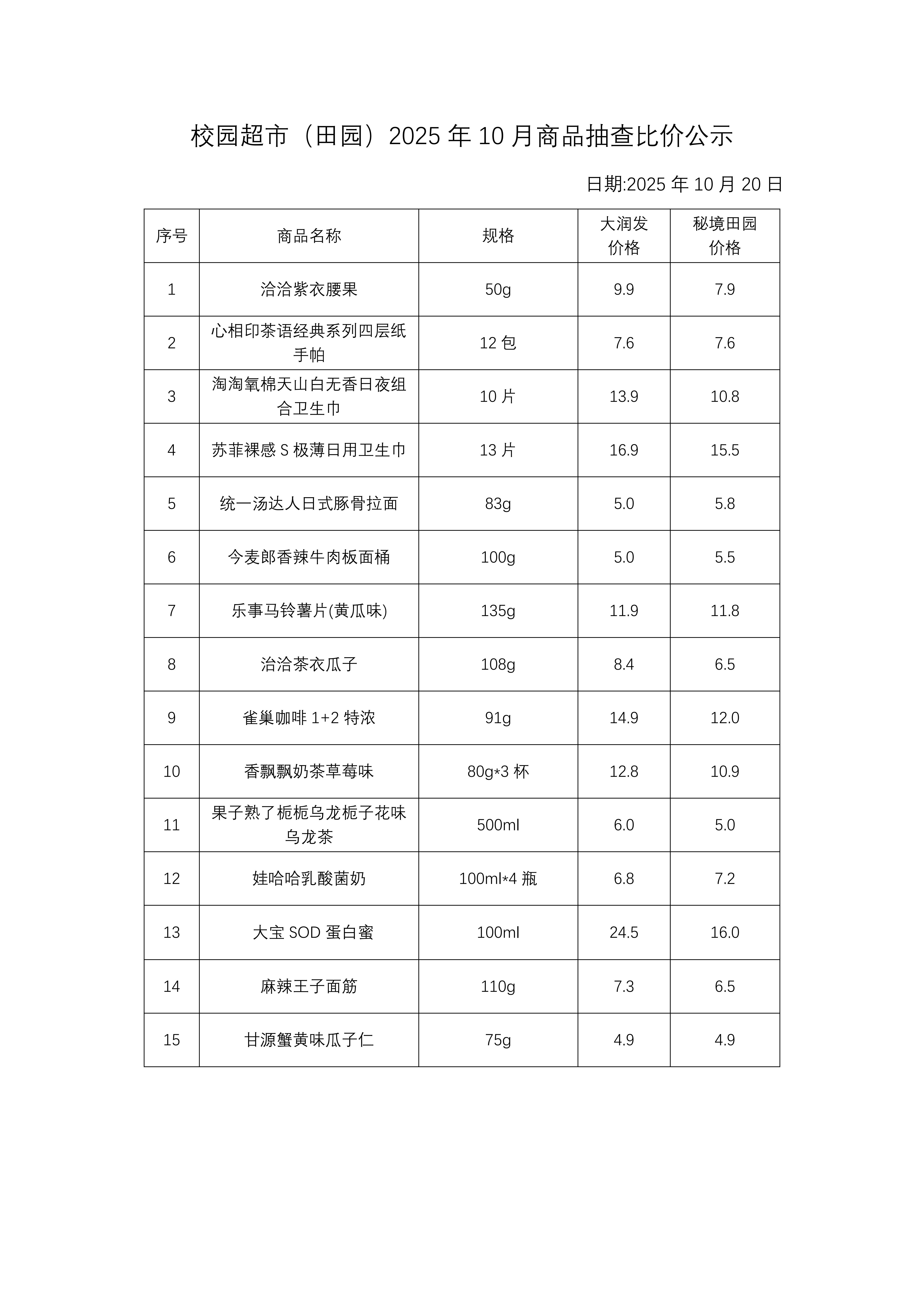 校园超市商品抽查比价公示(田园超市)202510