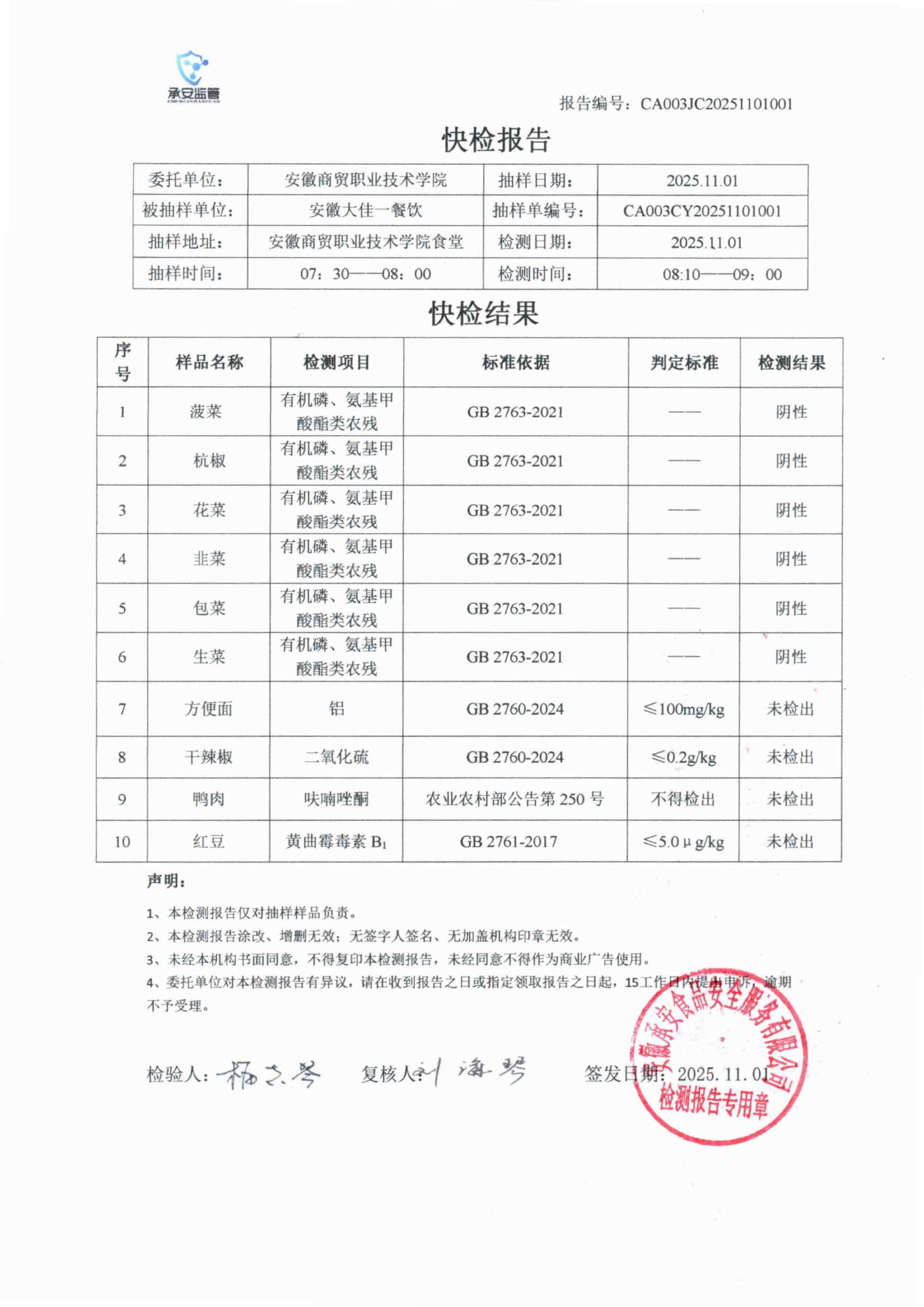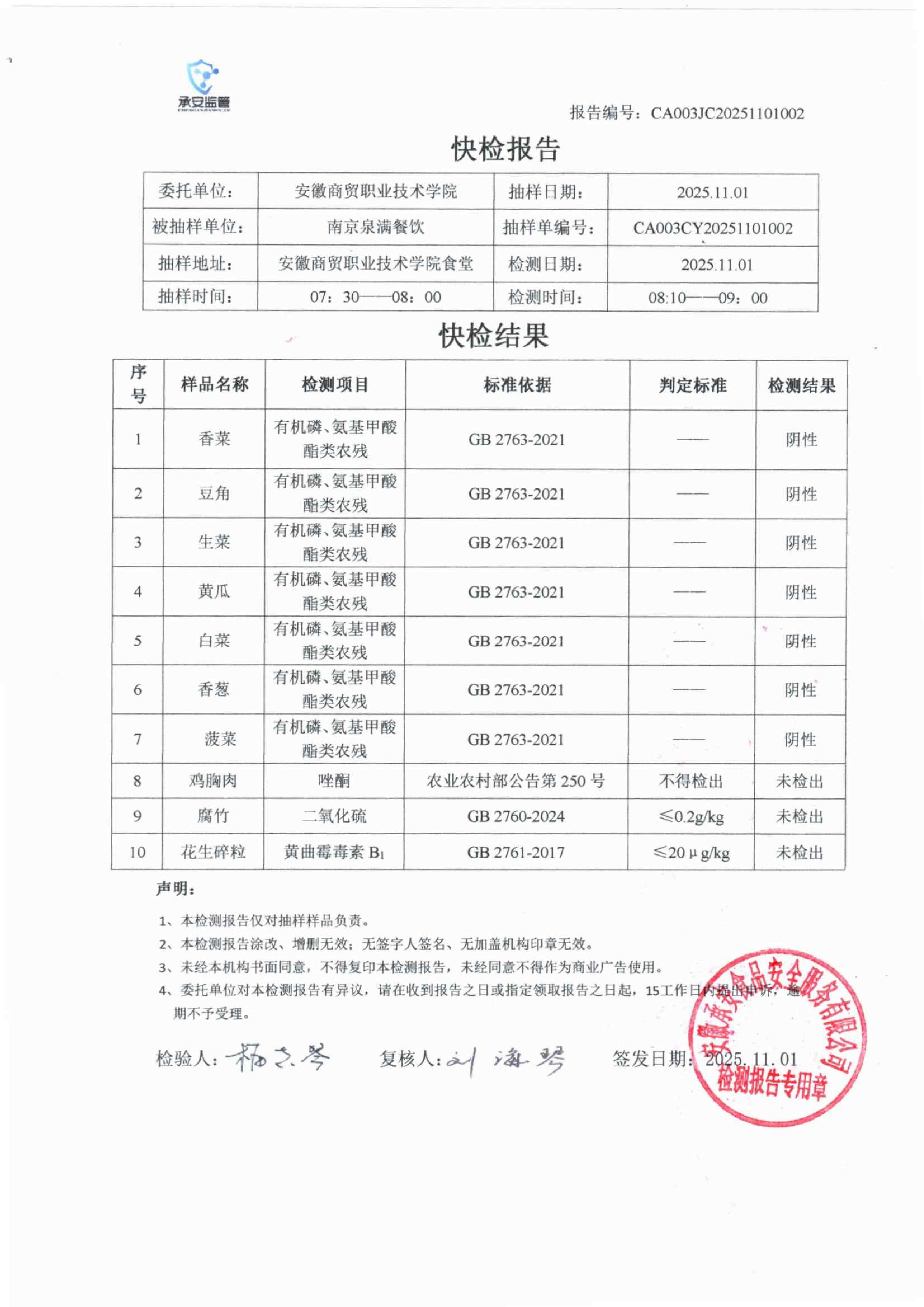 食堂食品原材料快检报告20251101