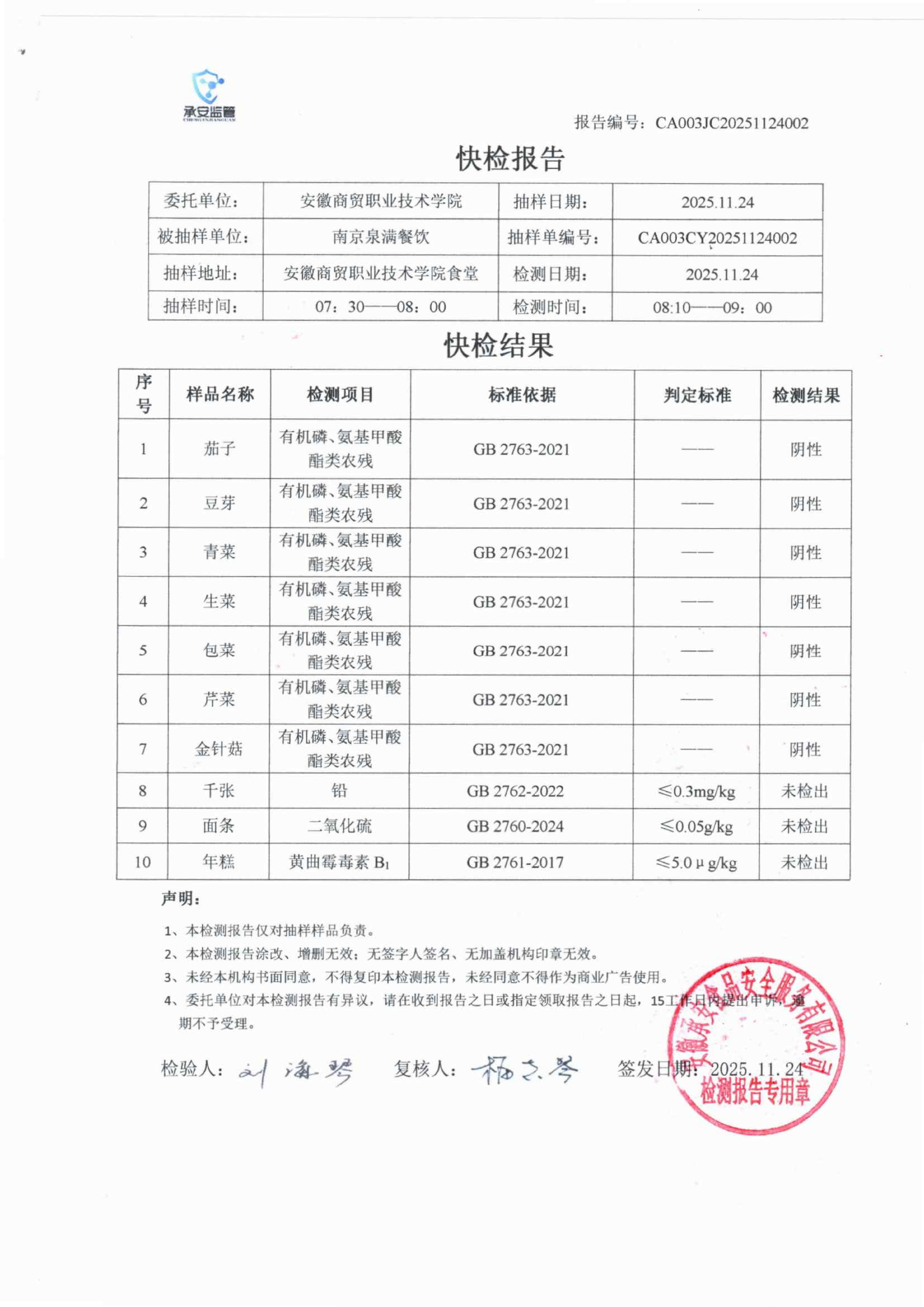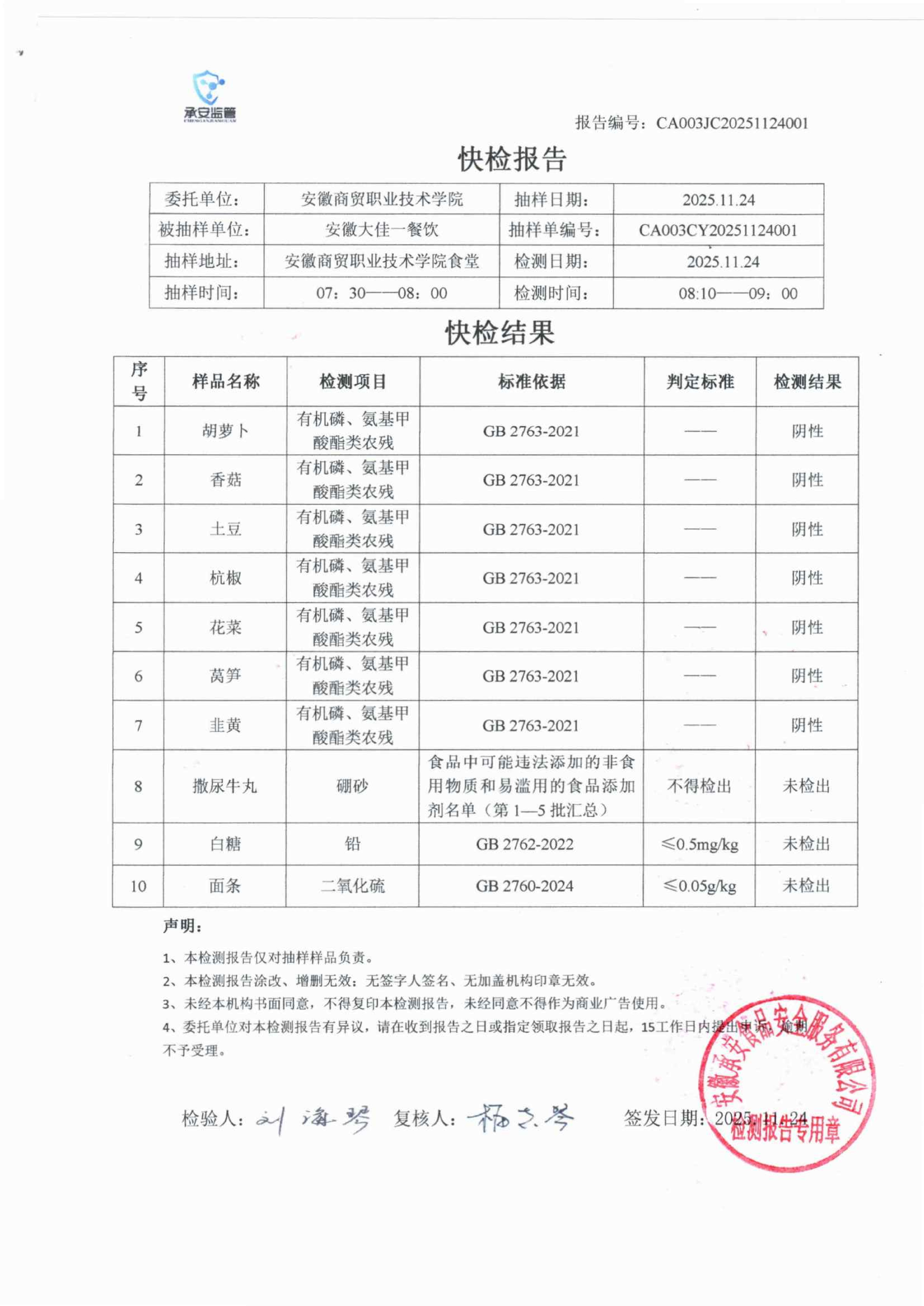 食堂食品原材料快检报告20251124