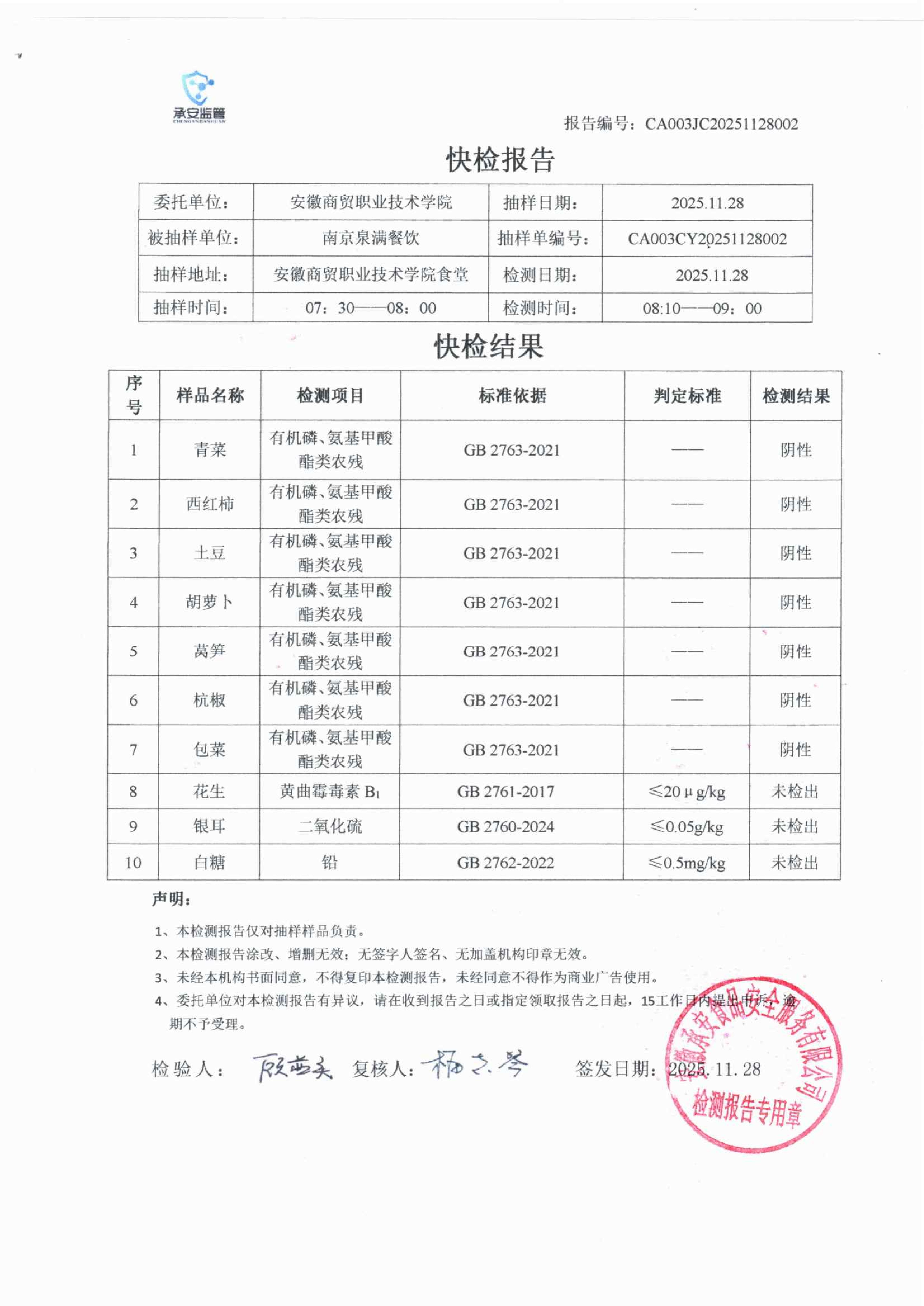 食堂食品原材料快检报告20251128