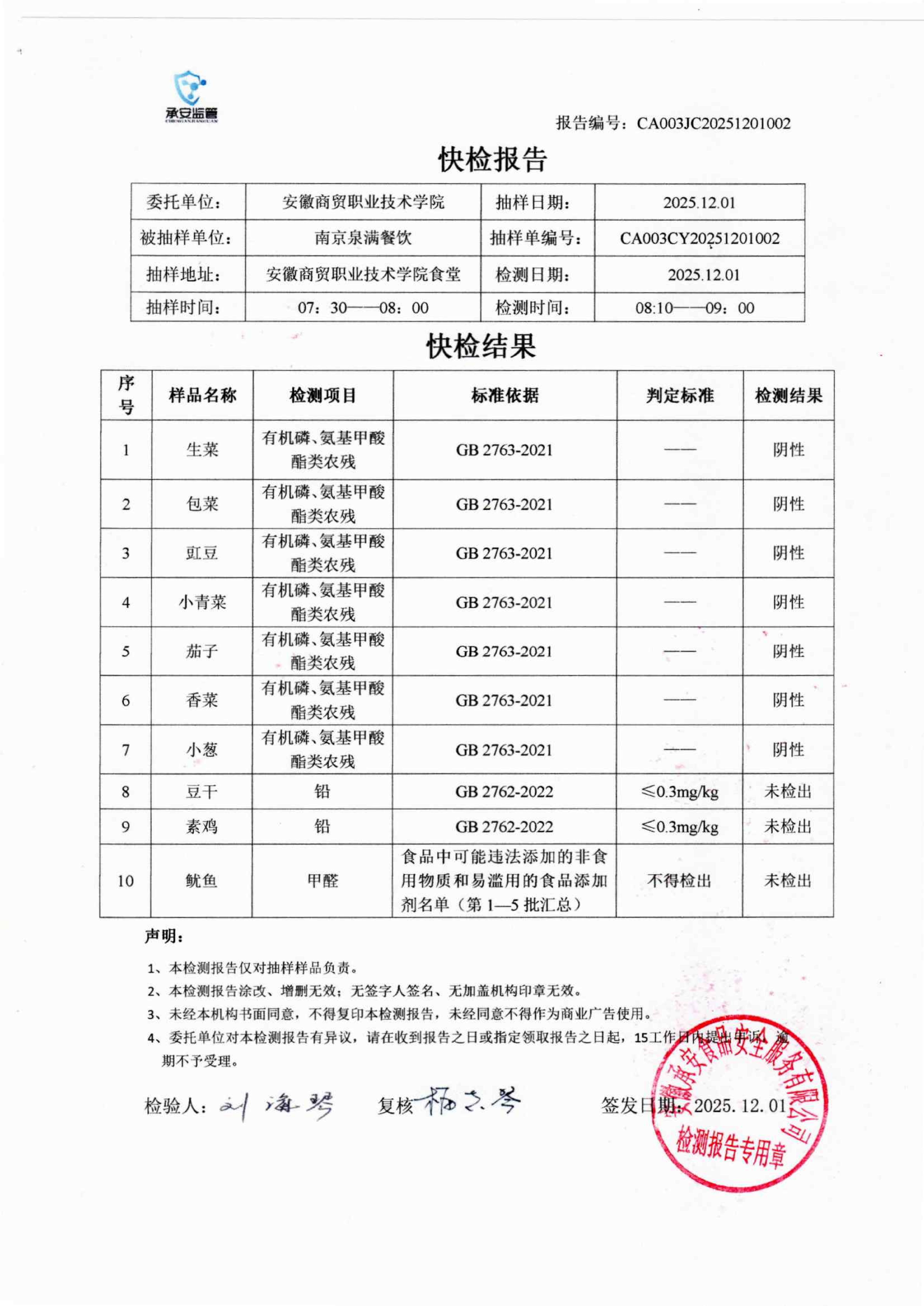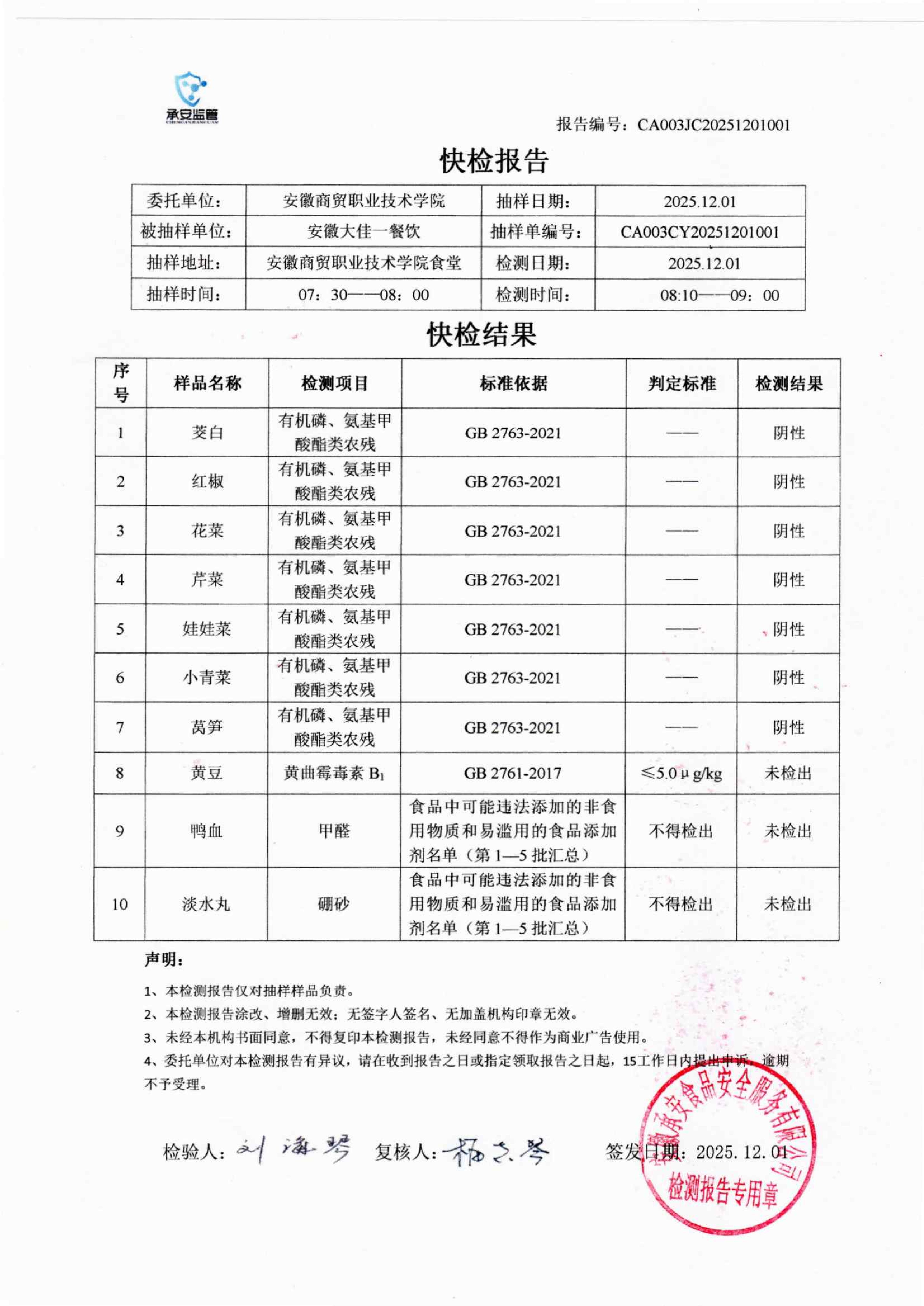 食堂食品原材料快检报告20251201
