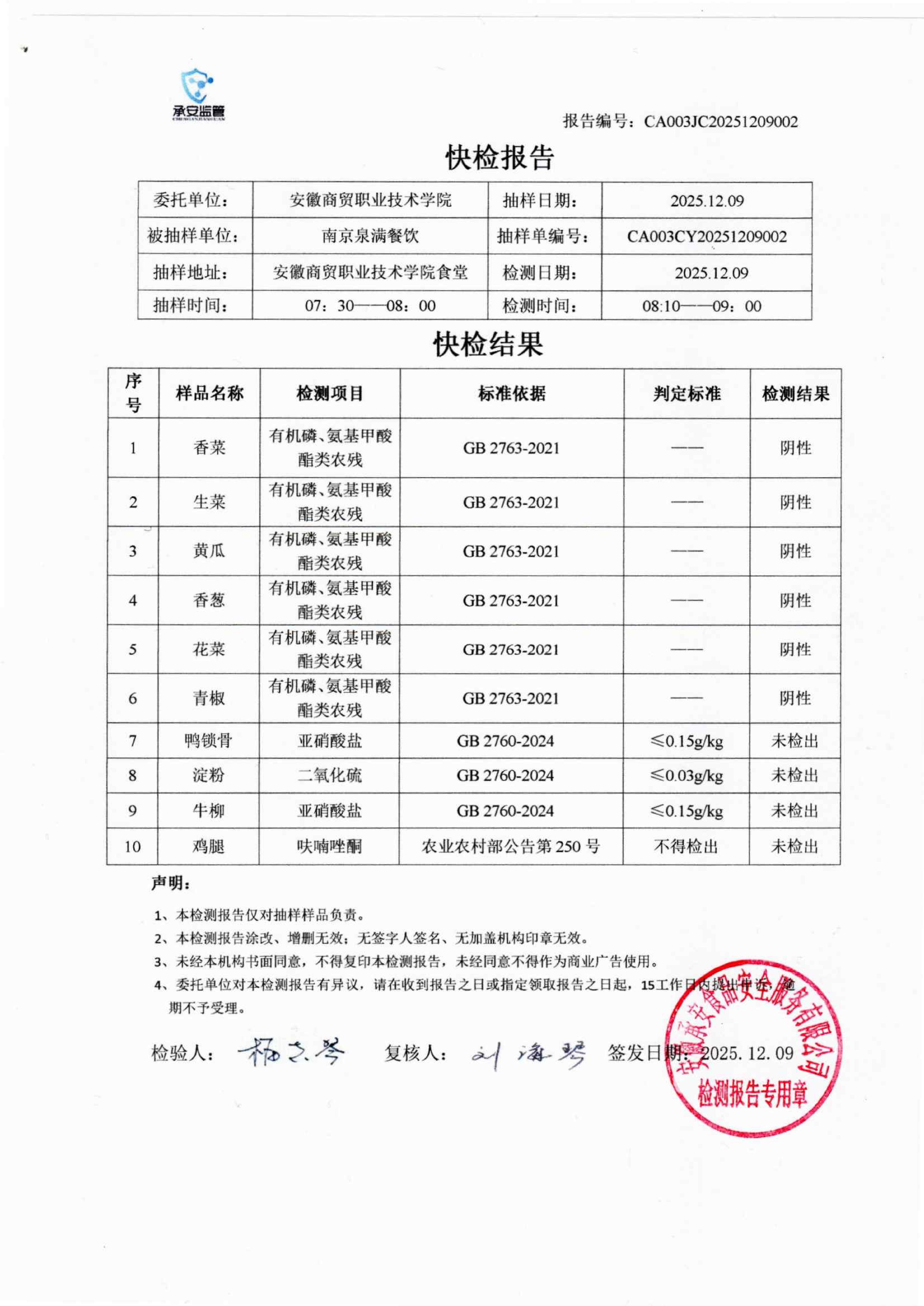 食堂食品原材料快检报告20251209