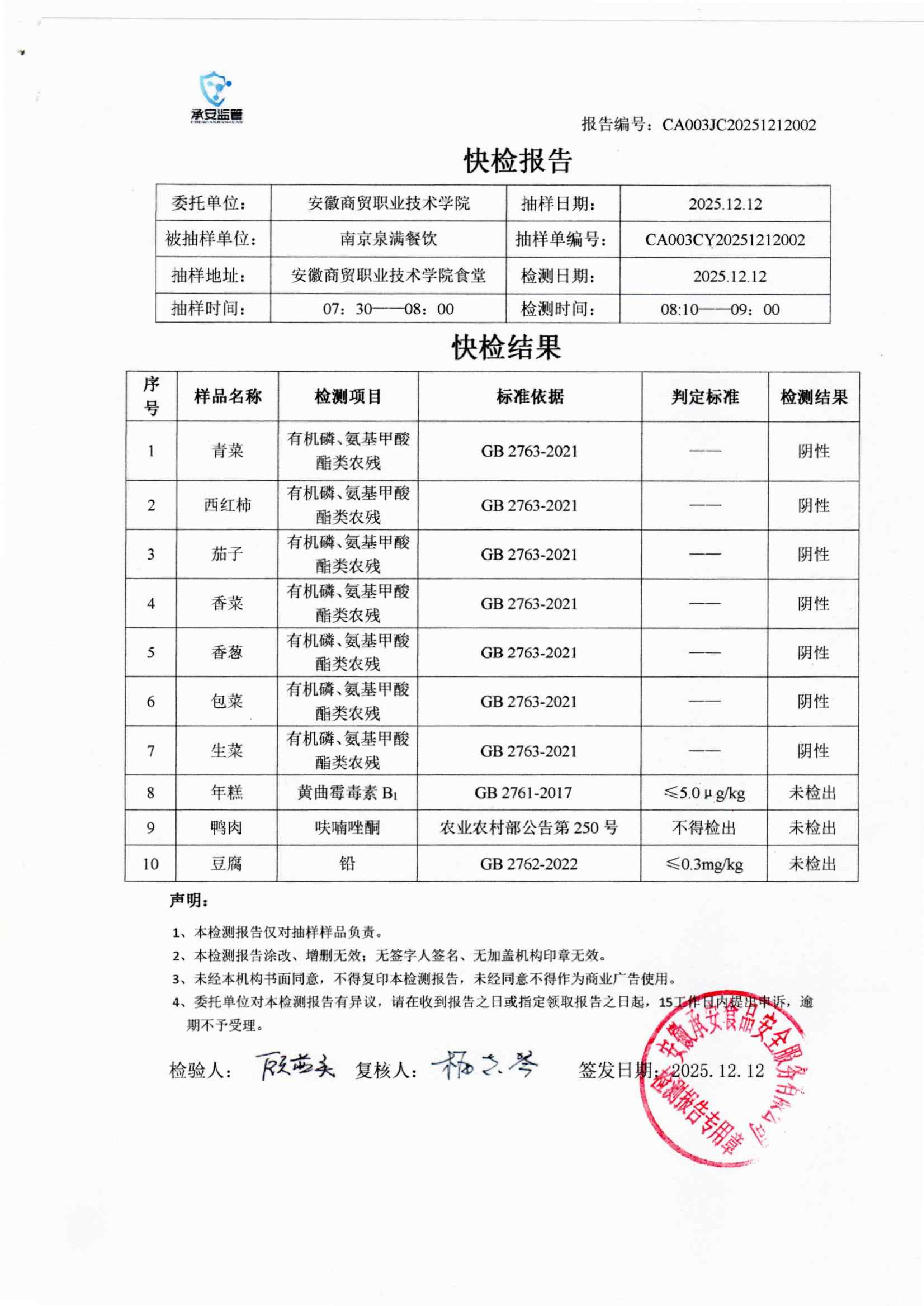 食堂食品原材料快检报告20251212