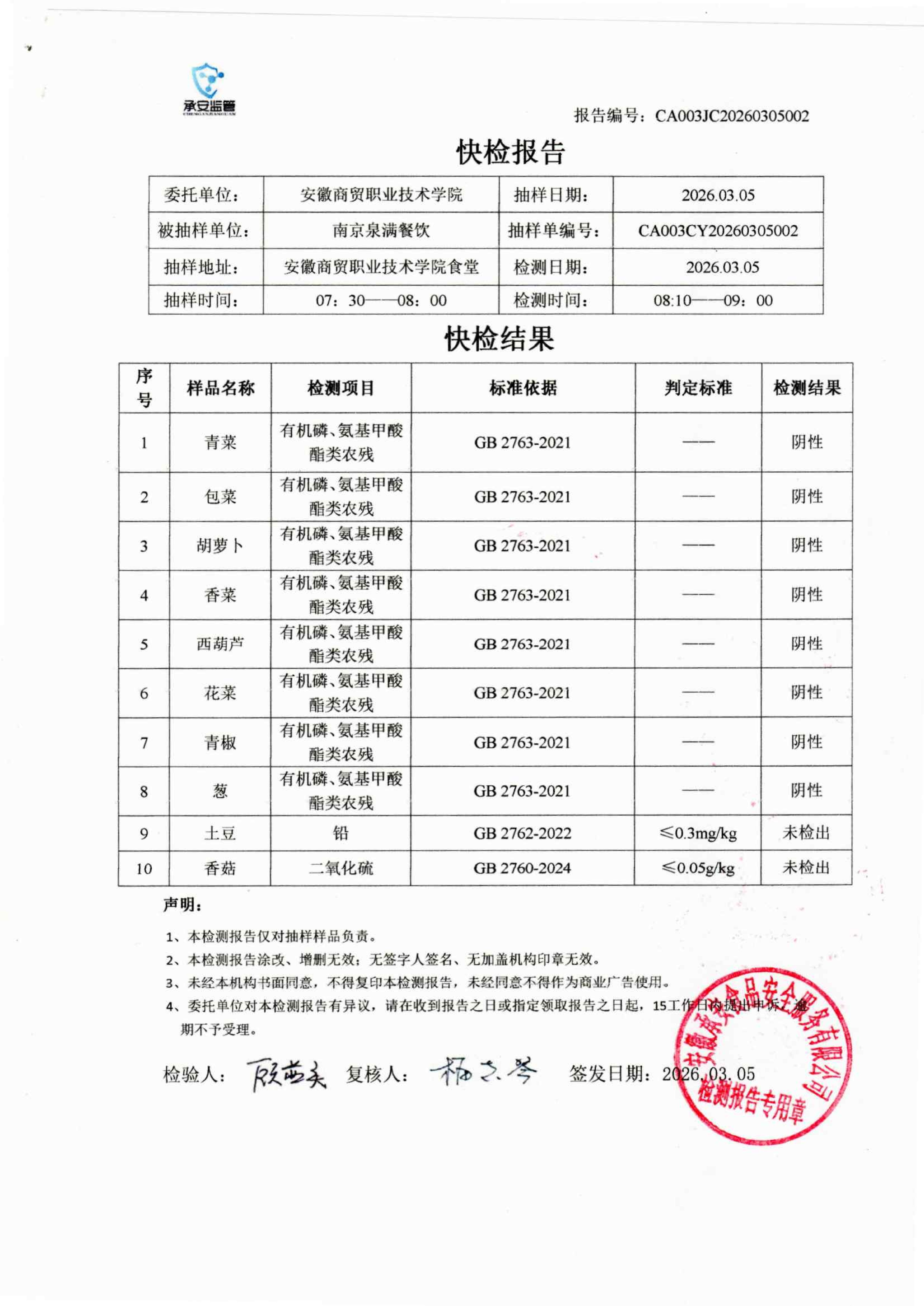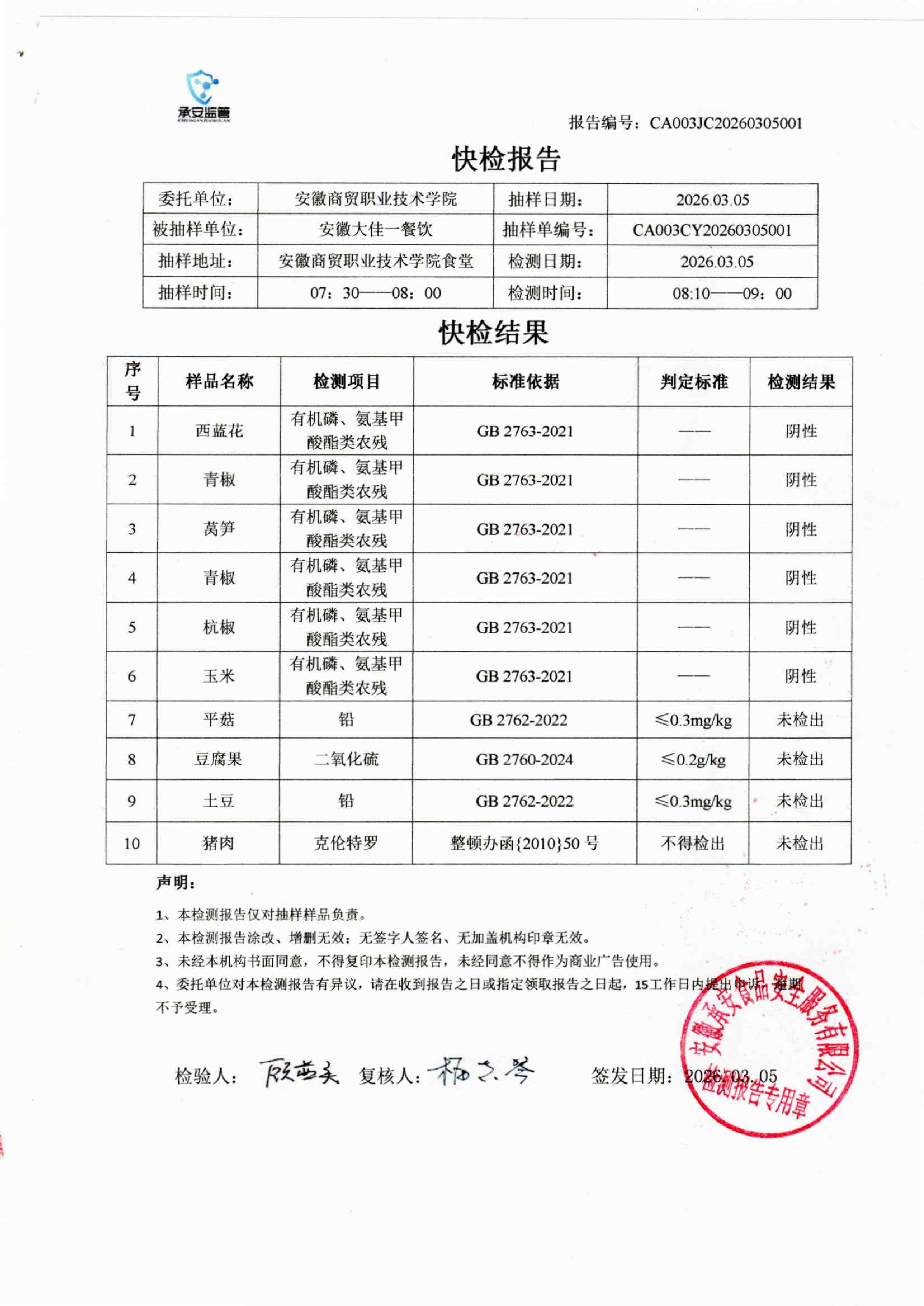 食堂食品原材料快检报告20260305