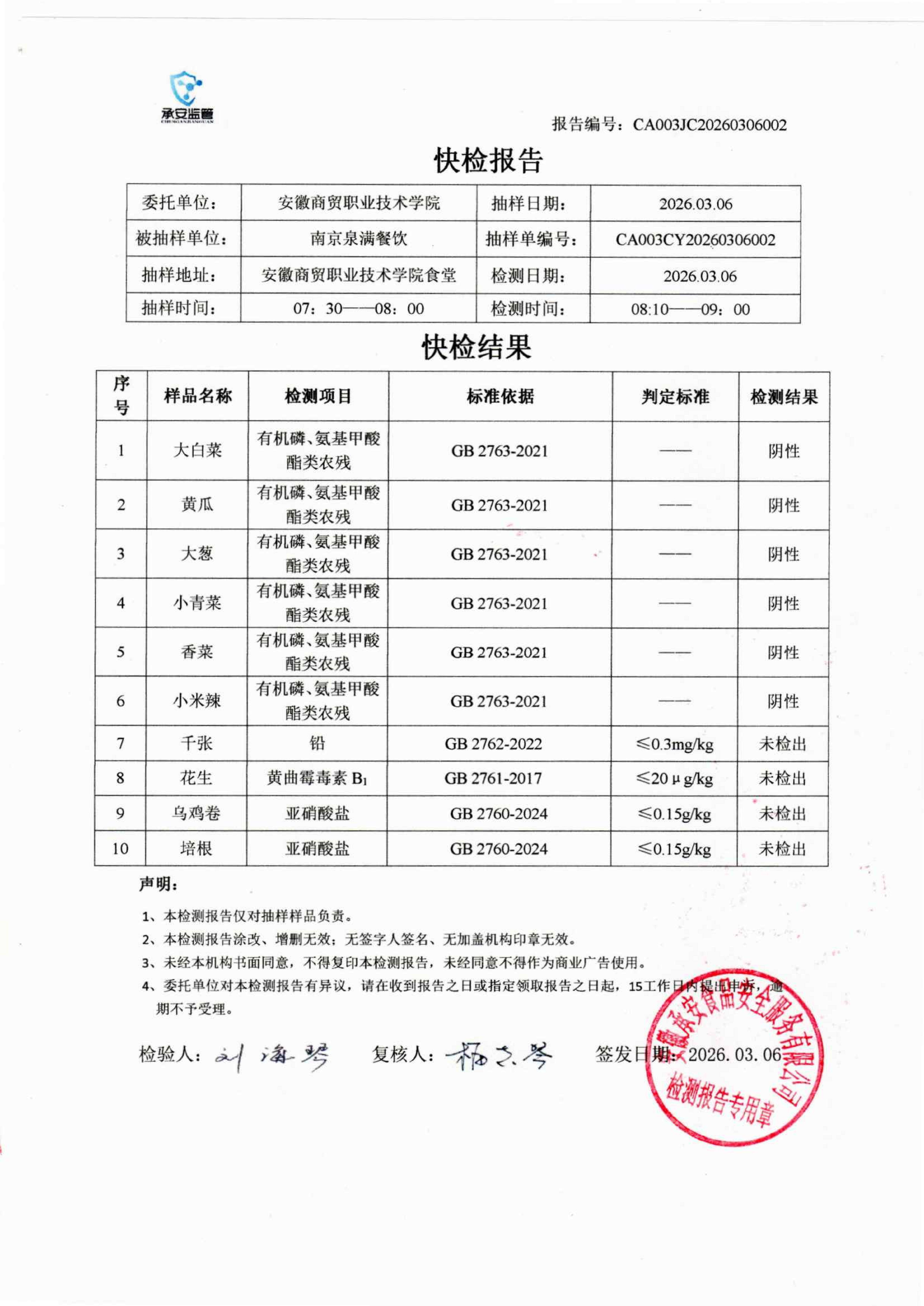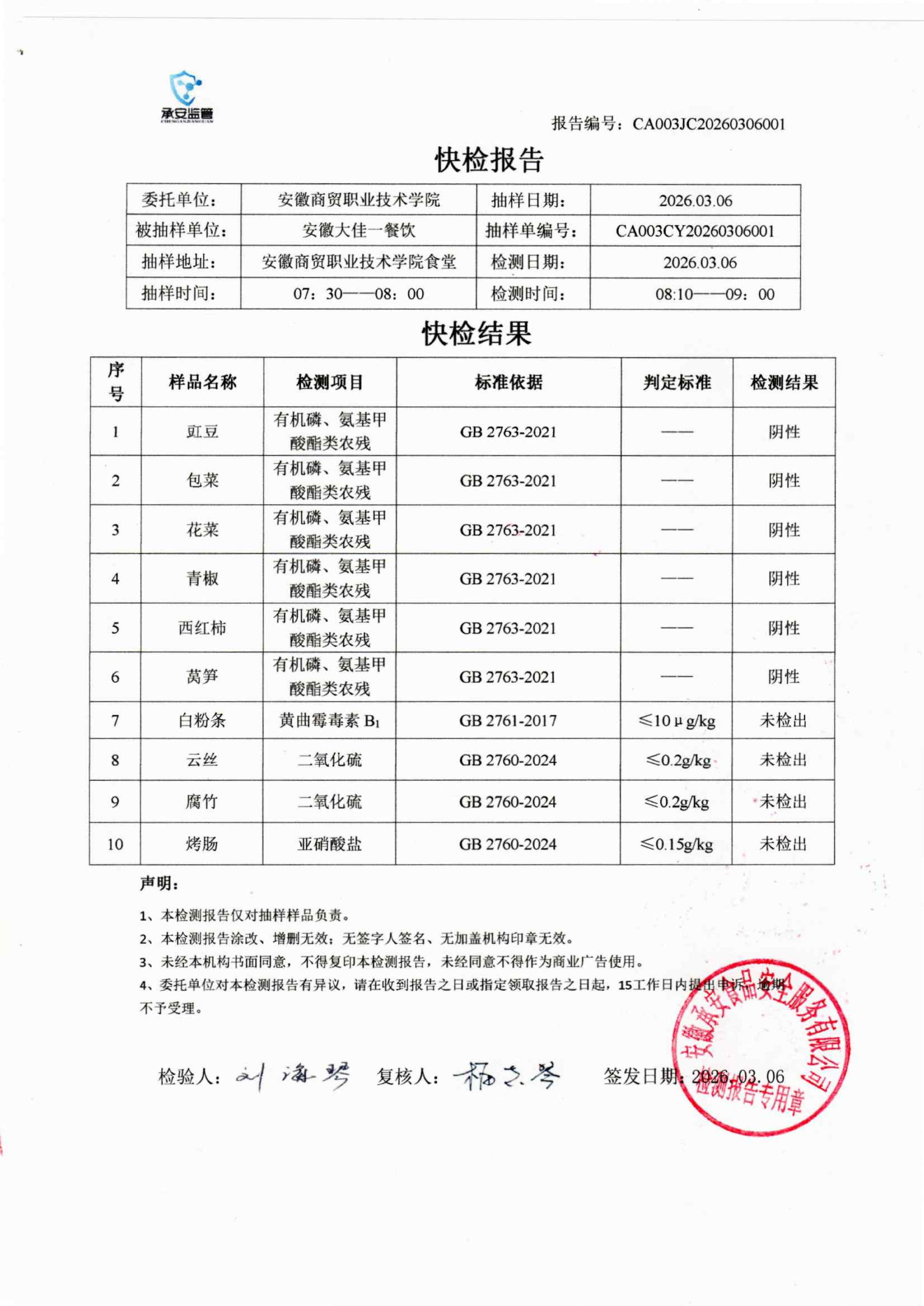 食堂食品原材料快检报告20260306
