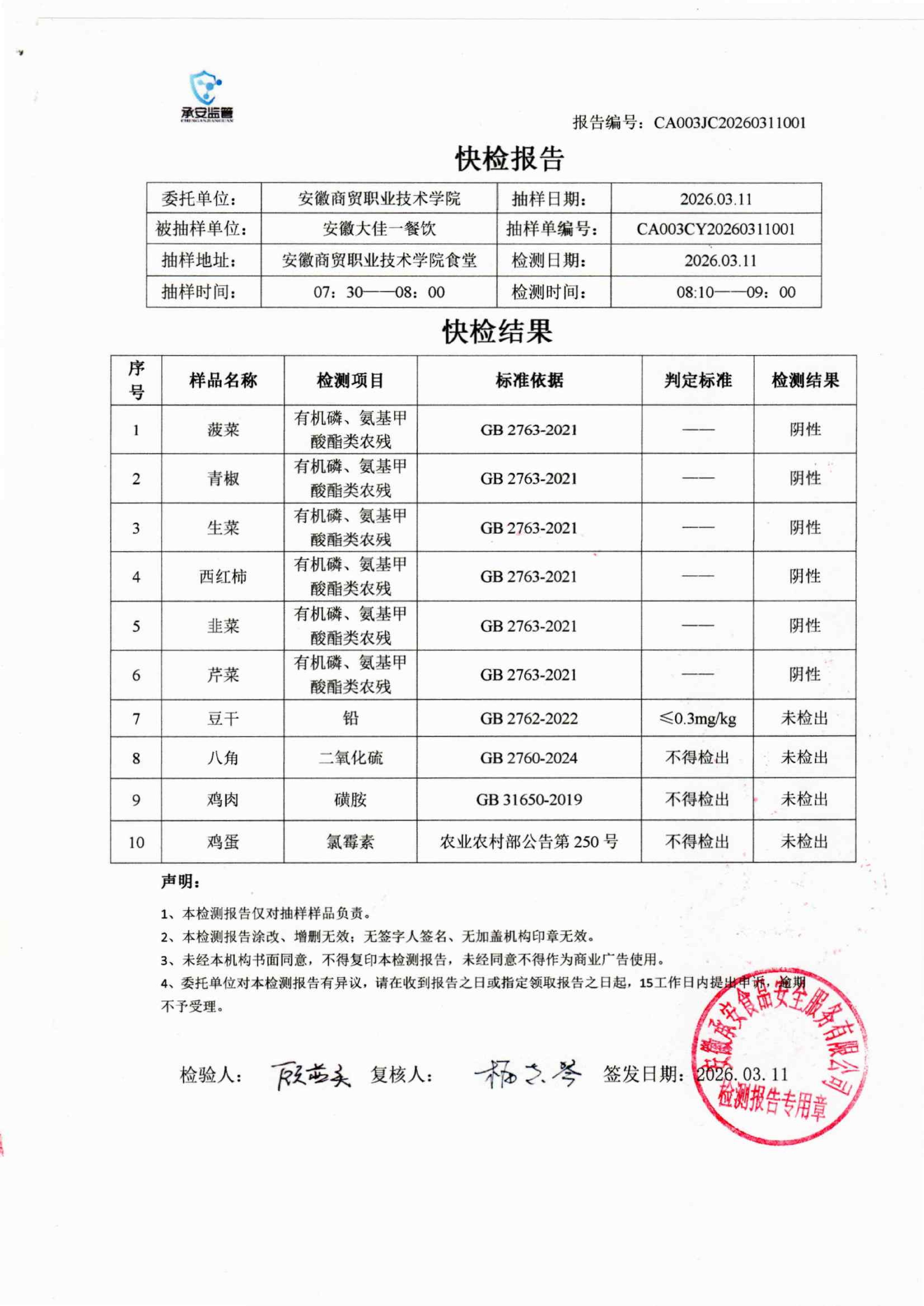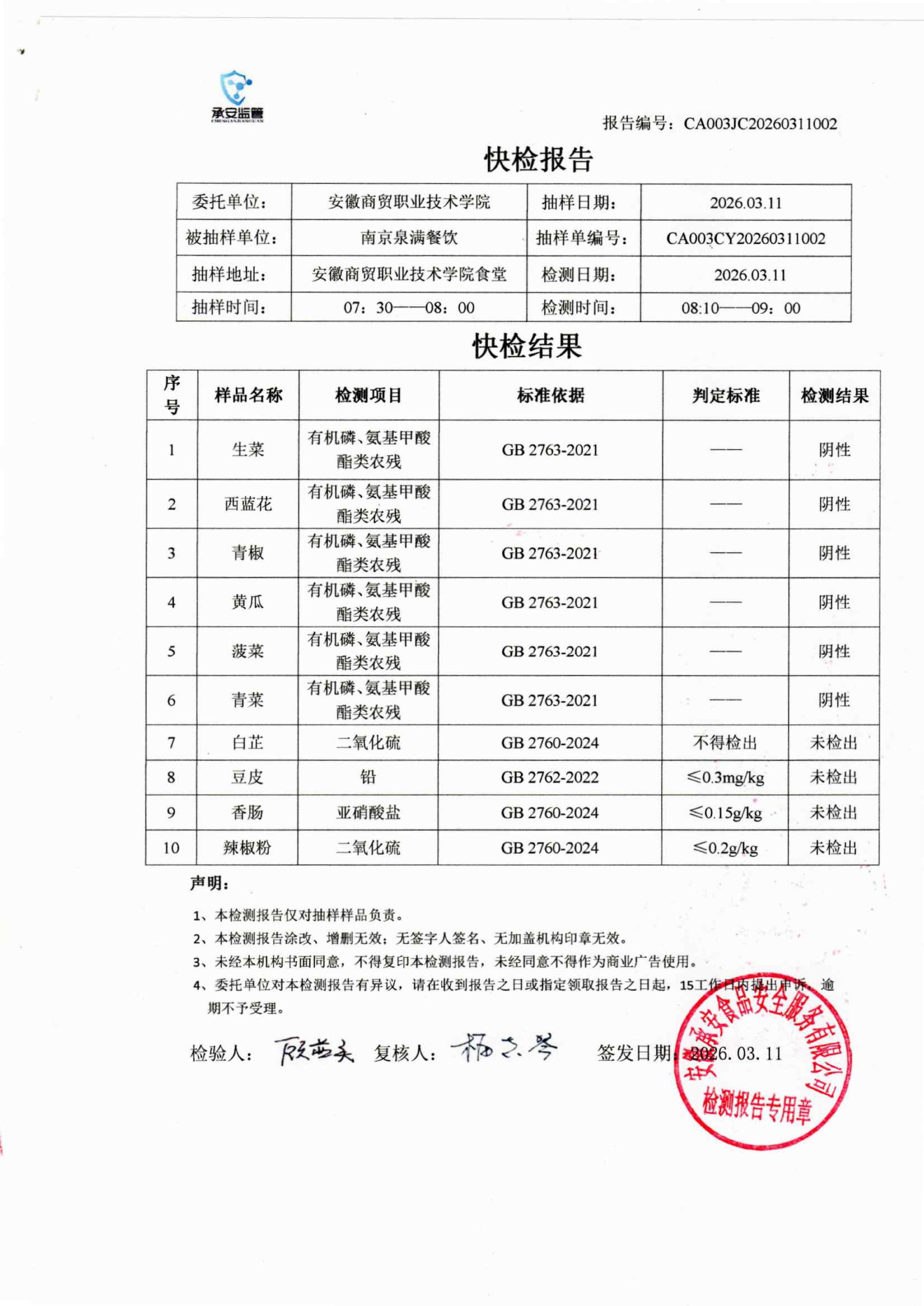 食堂食品原材料快检报告20260311