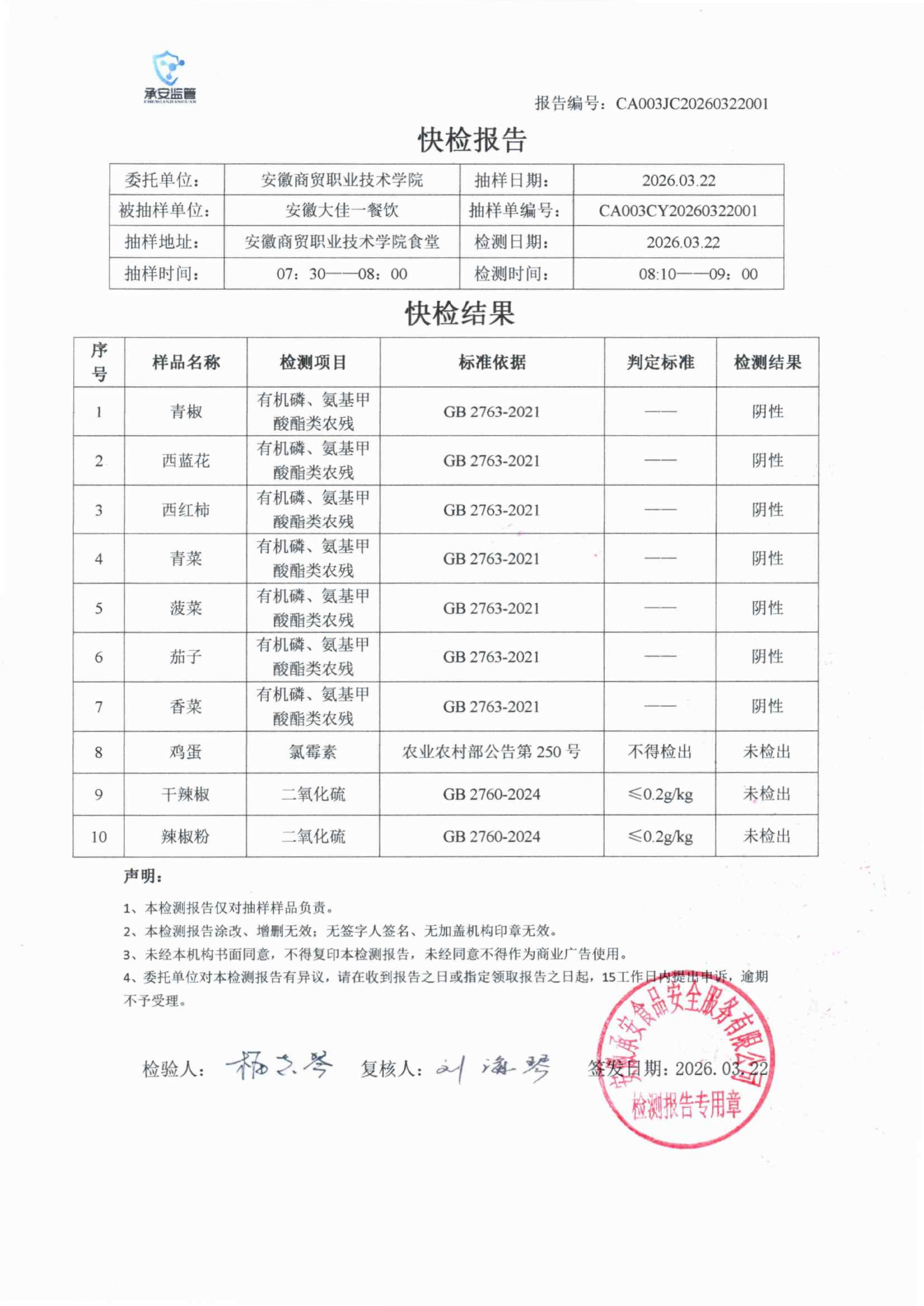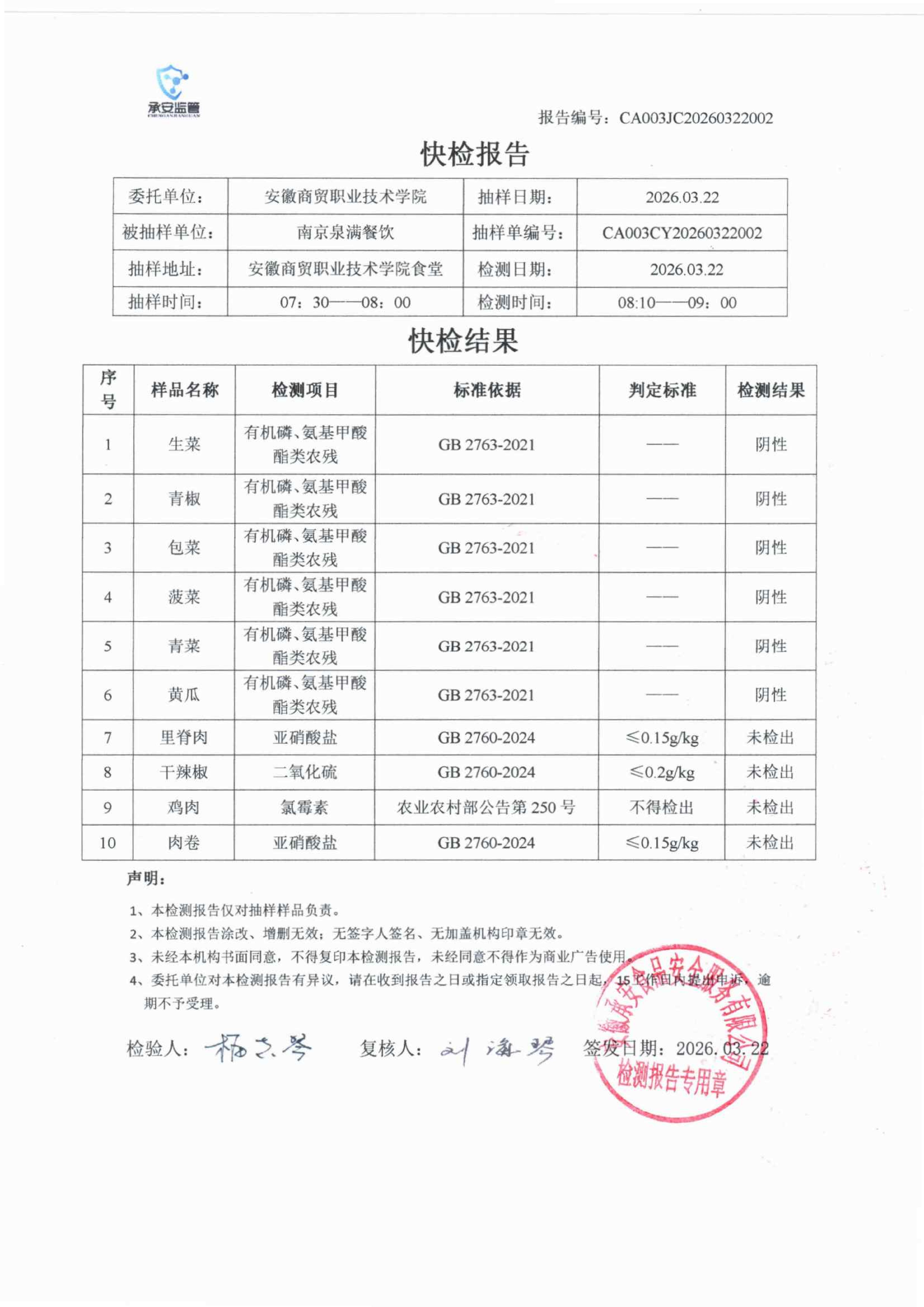 食堂食品原材料快检报告20260322