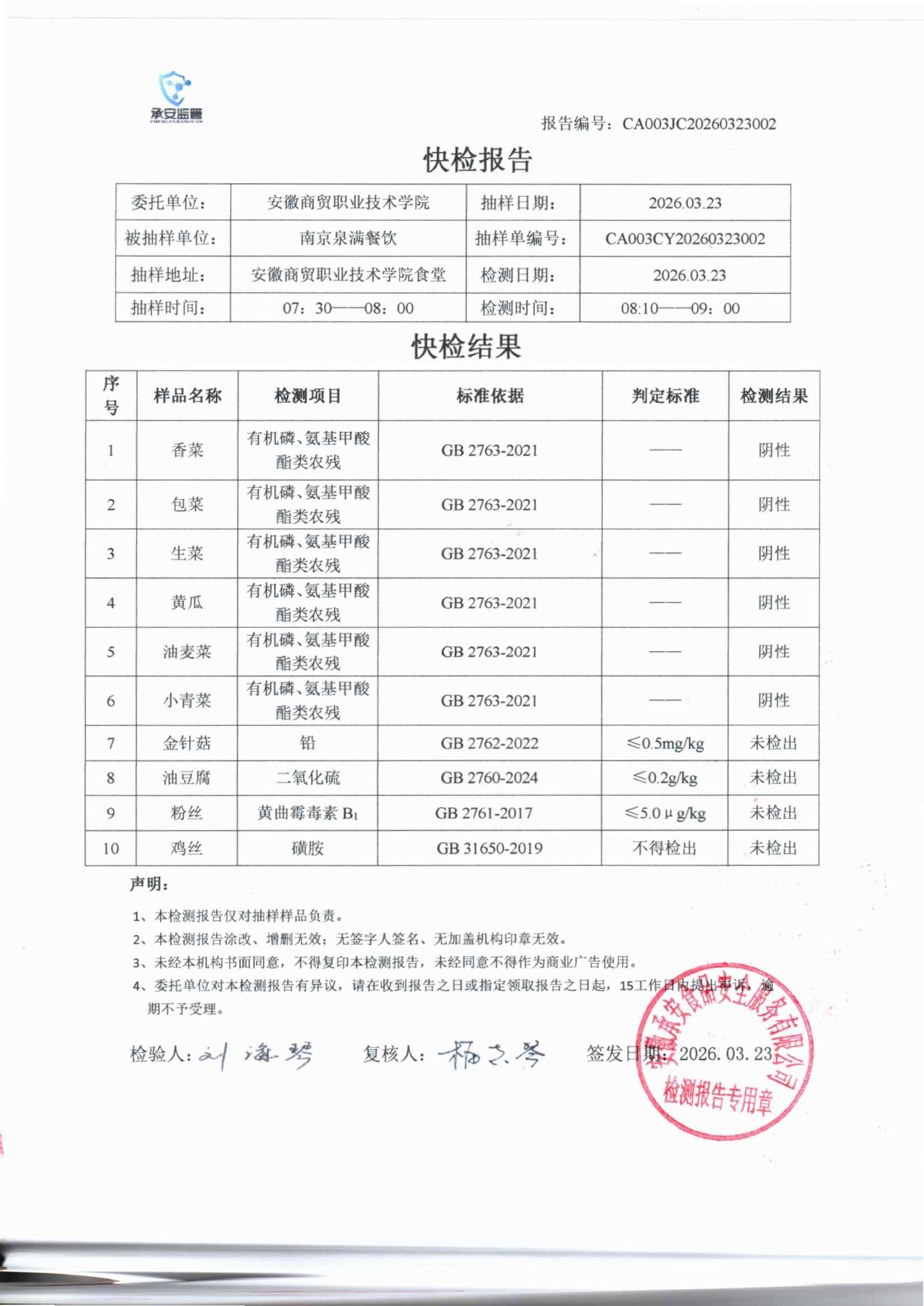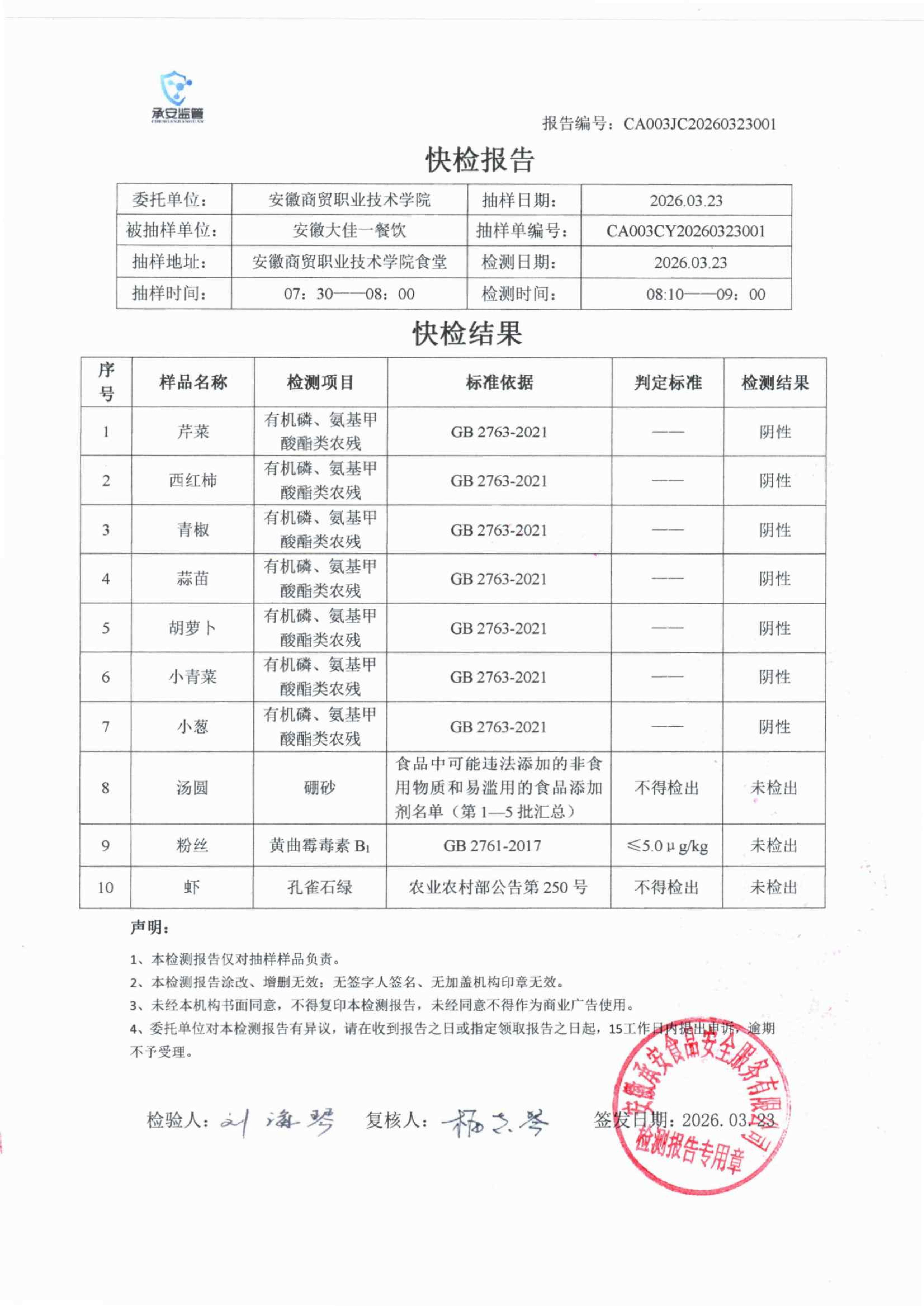 食堂食品原材料快检报告20260323
