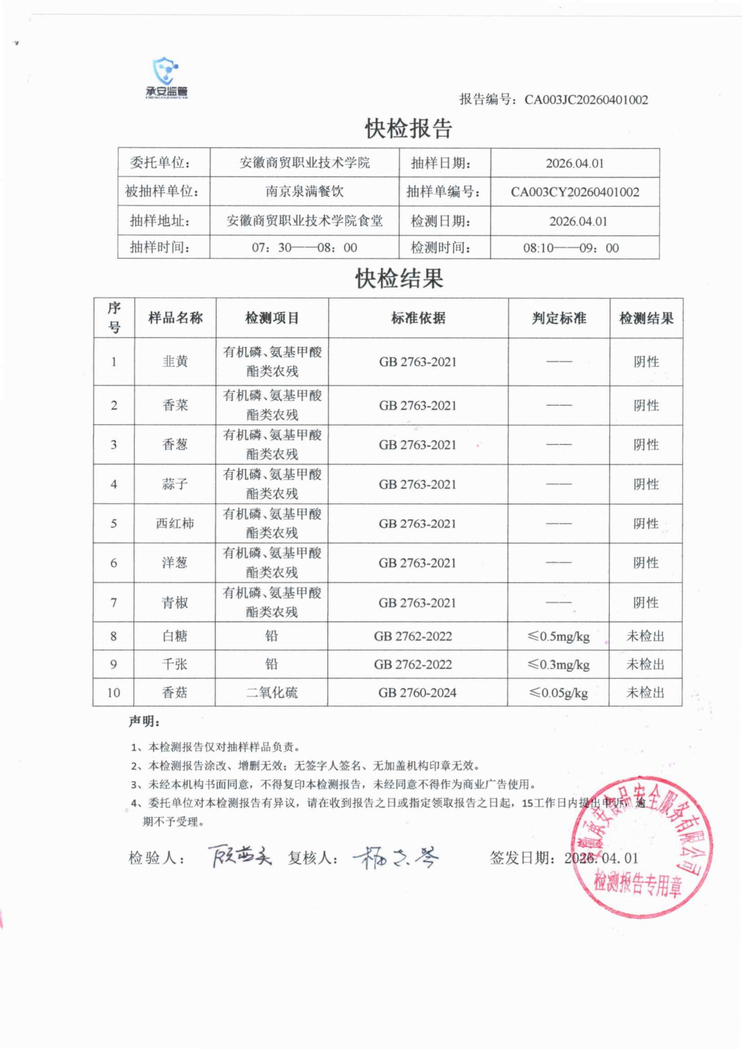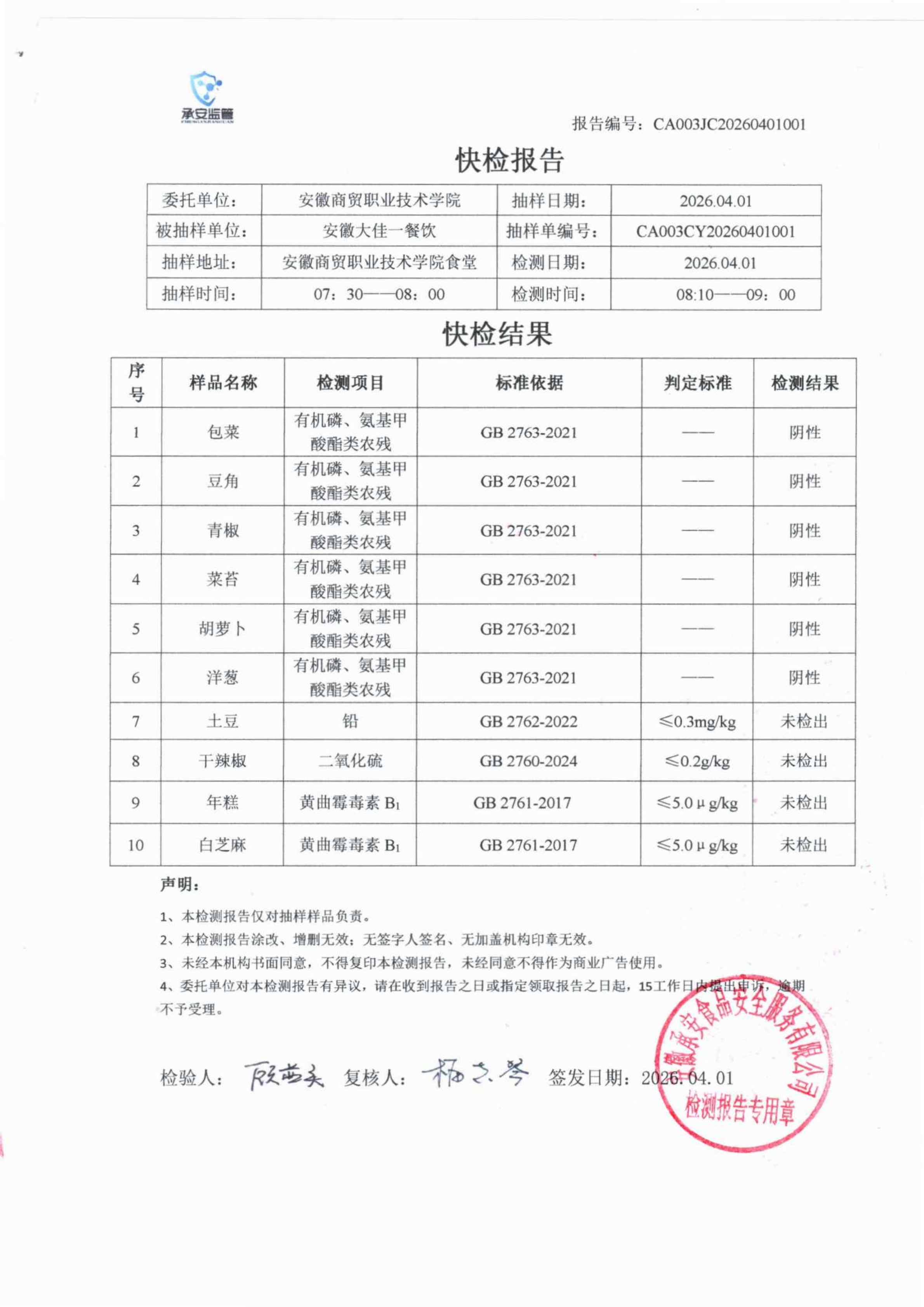 食堂食品原材料快检报告20260401