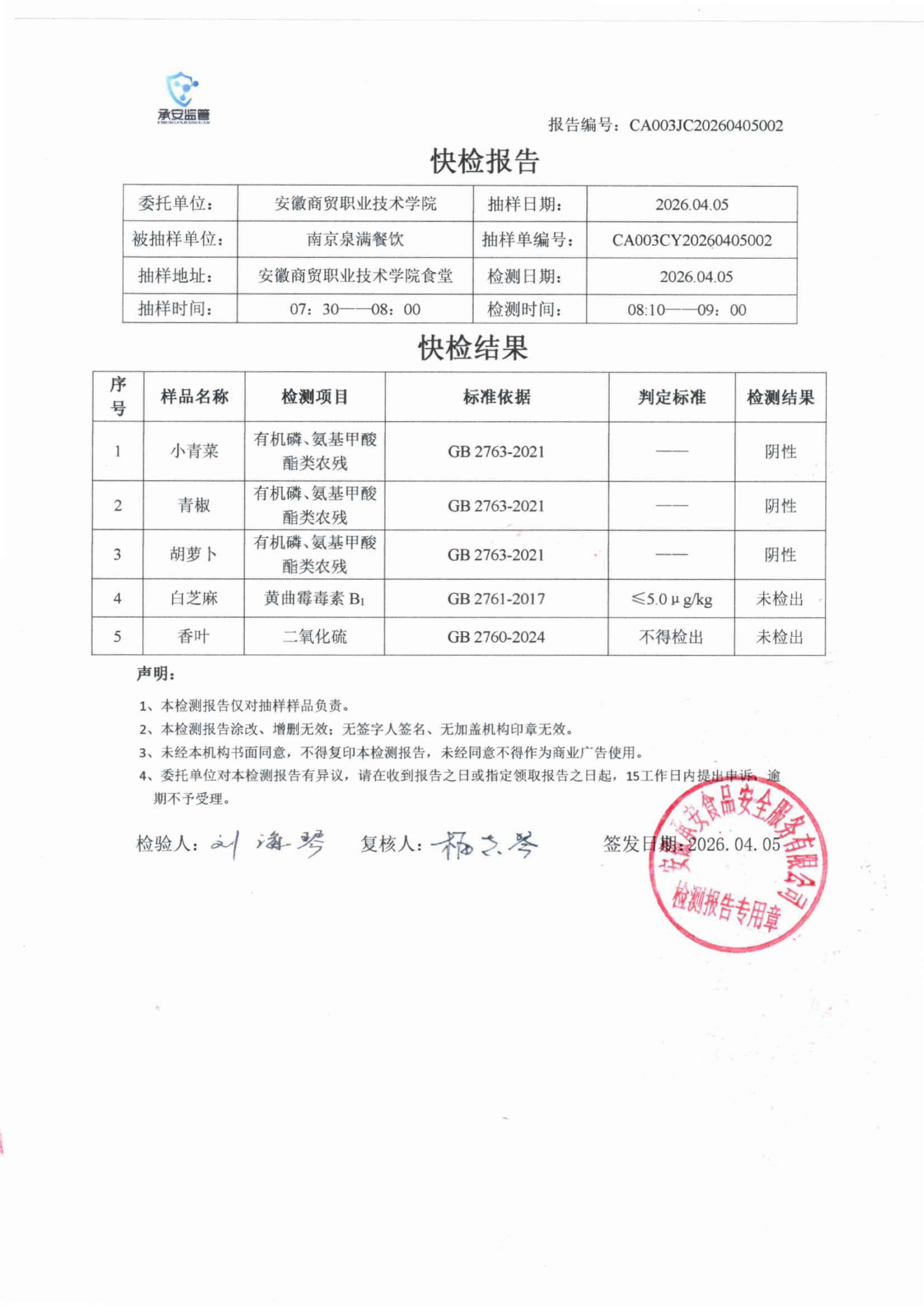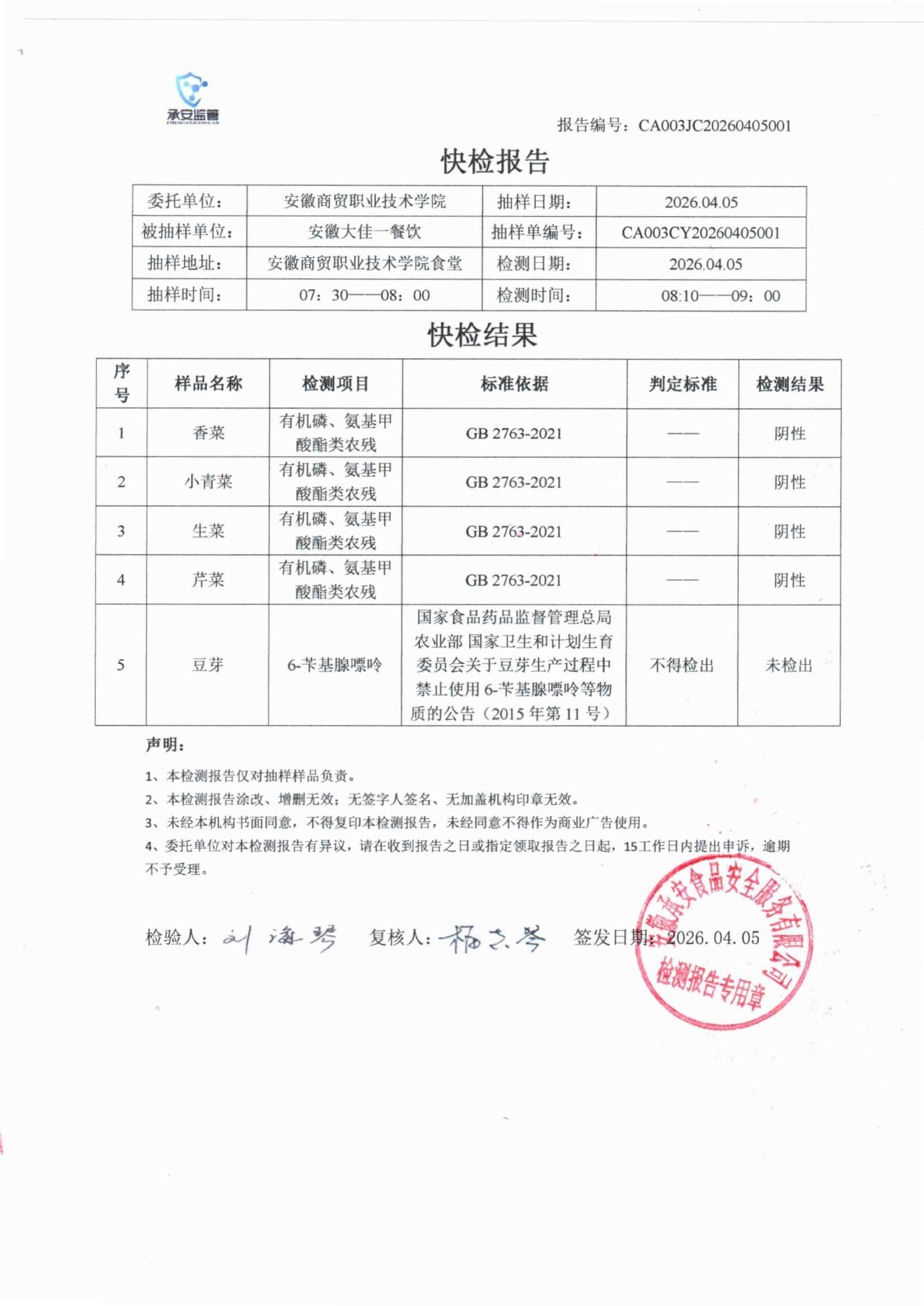 食堂食品原材料快检报告20260405