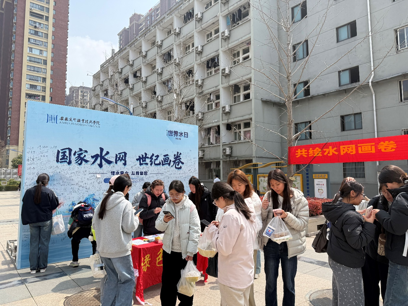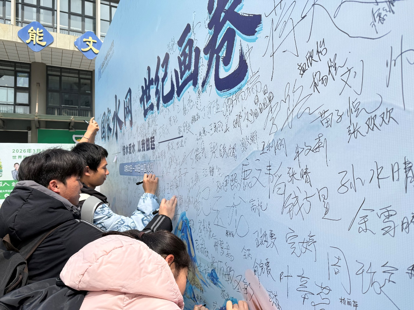 活动期间,学校在教学楼、食堂、宿舍区等人员密集场所布设主题宣传展板,依托校园电子屏滚动播放节水知识、国家水网建设科普内容,全方位营造浓厚的节水护水宣传氛围。在多功能文化餐厅广场,学校组织开展节水承诺签名活动,六百余名师生踊跃参与,以亲笔签名作出节水承诺,用实际行动践行节水护水的责任与理念。此外,后勤管理处、校团委联合牵头,围绕“国家水网 世纪画卷”核心主题,精心策划科普宣传、创意征集、校园巡检三大活动板块,采取线上线下相结合的方式,推动节水理念入脑入心、落地见效。