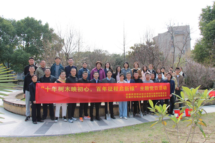 为积极响应国家生态文明建设的号召,深入践行绿色发展理念,切实增强党员教师和校企服务人员的环保意识与社会责任感,3月11日,行政第四党总支联合安徽阡陌物业服务集团党总支共同开展了“十年树木映初心,百年征程启新绿”主题党日植树活动。