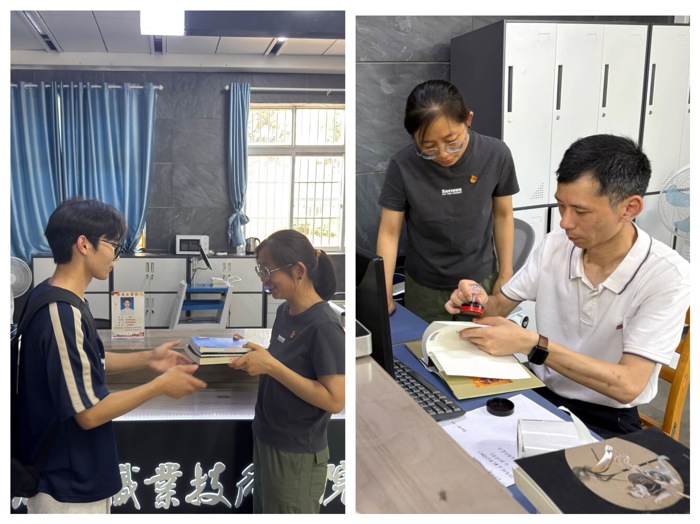 图书馆党支部组织党员志愿者开展毕业生文明离校“一站式还书”服务,在书香相伴中话别,并叮嘱毕业生人生路上再忙也要记得读书,用书籍滋养心灵。志愿者们在图书馆读者服务总台前热情地为毕业生集中办理图书归还等手续,细致温情的服务得到同学们的赞许,为毕业生离校注入书香暖意。