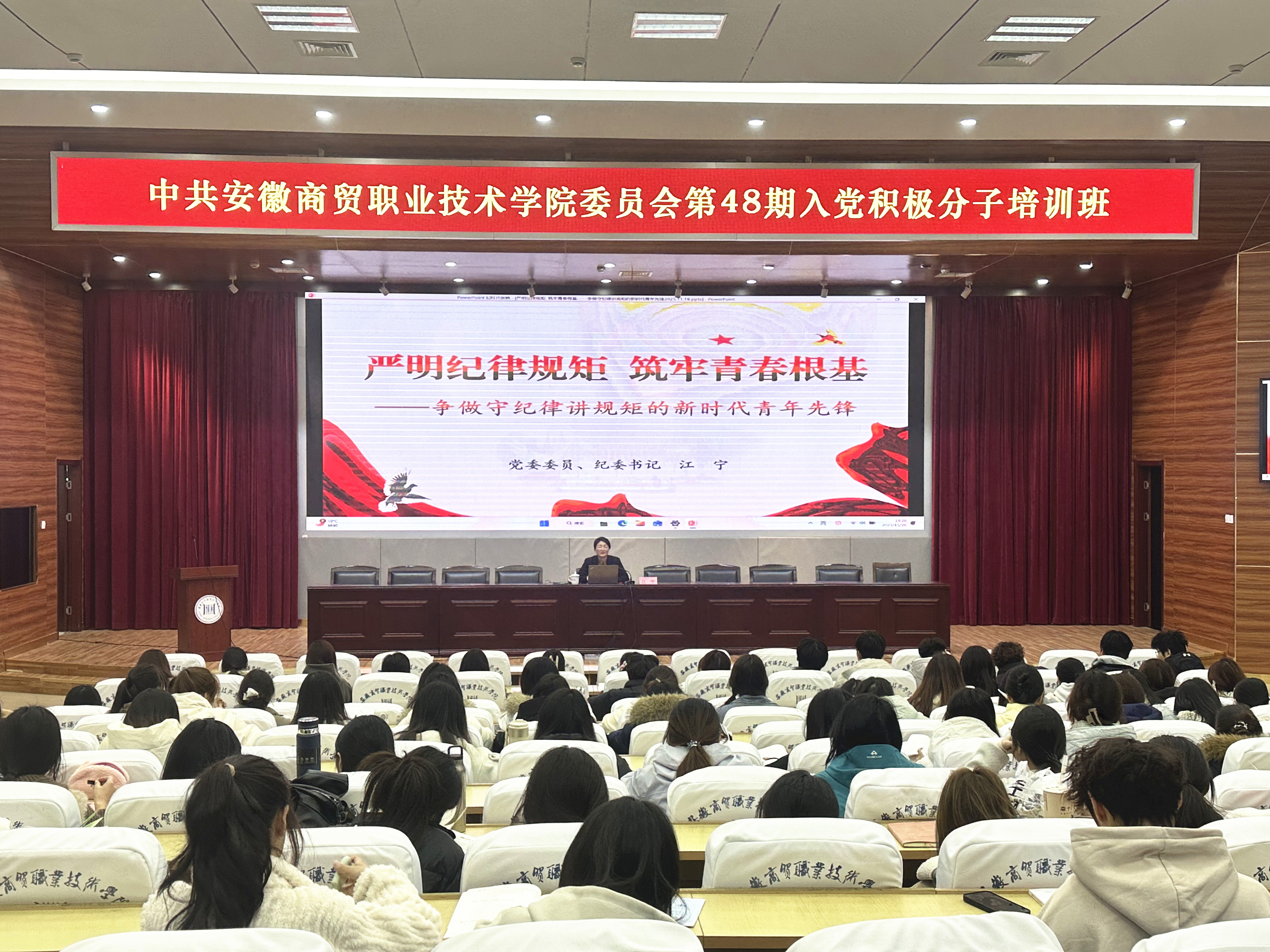 11月26日晚,学校党委委员、纪委书记江宁以《严明纪律规矩 筑牢青春根基——争做守纪律讲规矩的新时代青年先锋》为题,为第48期入党积极分子培训班全体学员带来了一堂思想深刻、内涵丰富的专题党课。