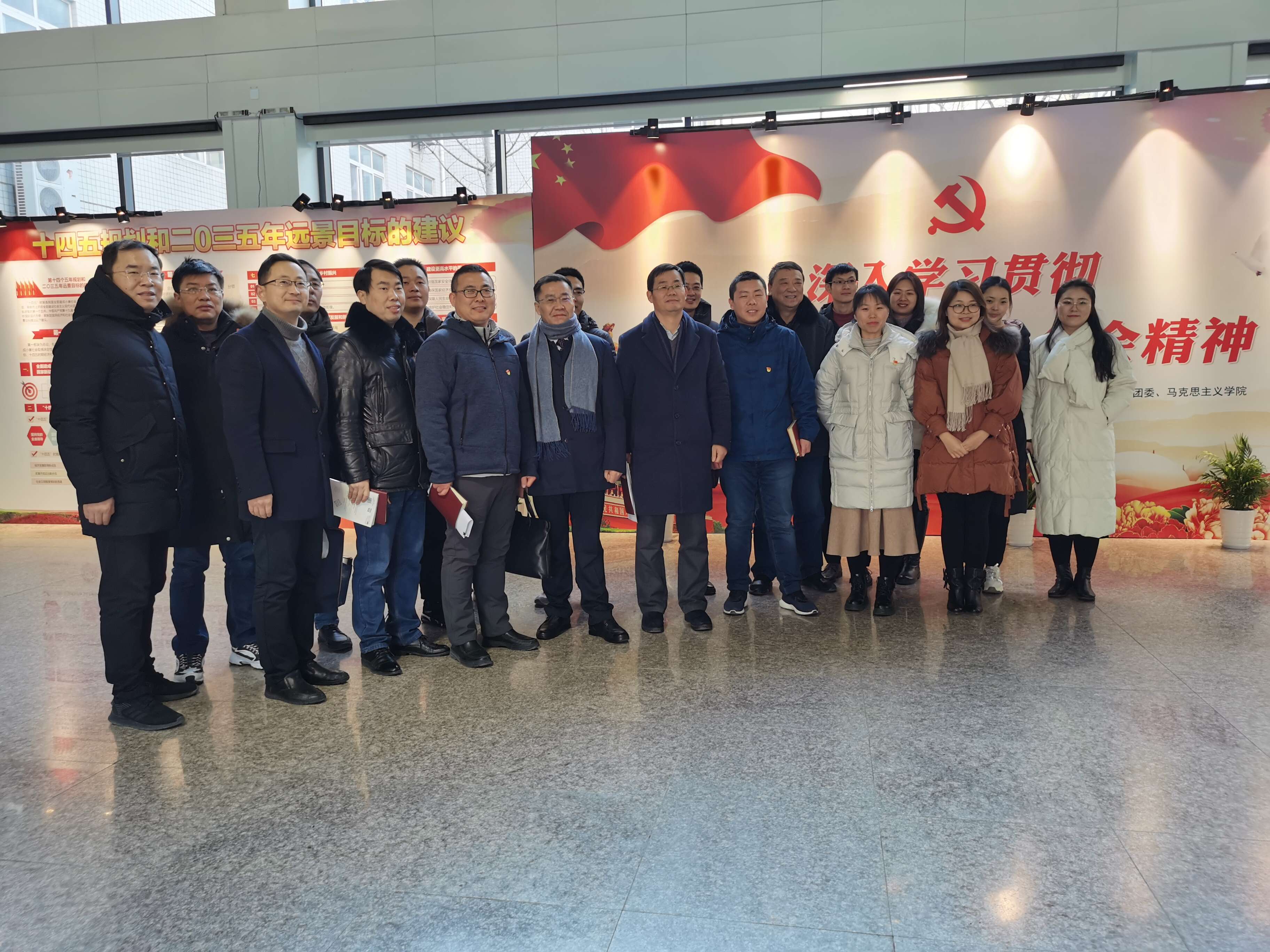 活动开始,全体党员认真观看了党的十九届五中全会公报视频,在黄义兵的带领下共同学习十九届五中全会公报要点。随后,全体党员前往校图书馆,参观了十九届五中全会、“十四五”规划和二〇三五年远景目标等图文展及系列书展,在工作人员的详细解说下,进一步加深了对党的十九届五中全会精神的领悟。