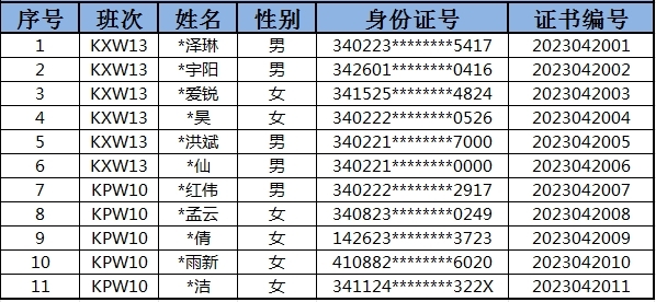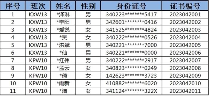 员工培训已完成,成绩合格,予以结业。现将培训员工结业信息予以公示。