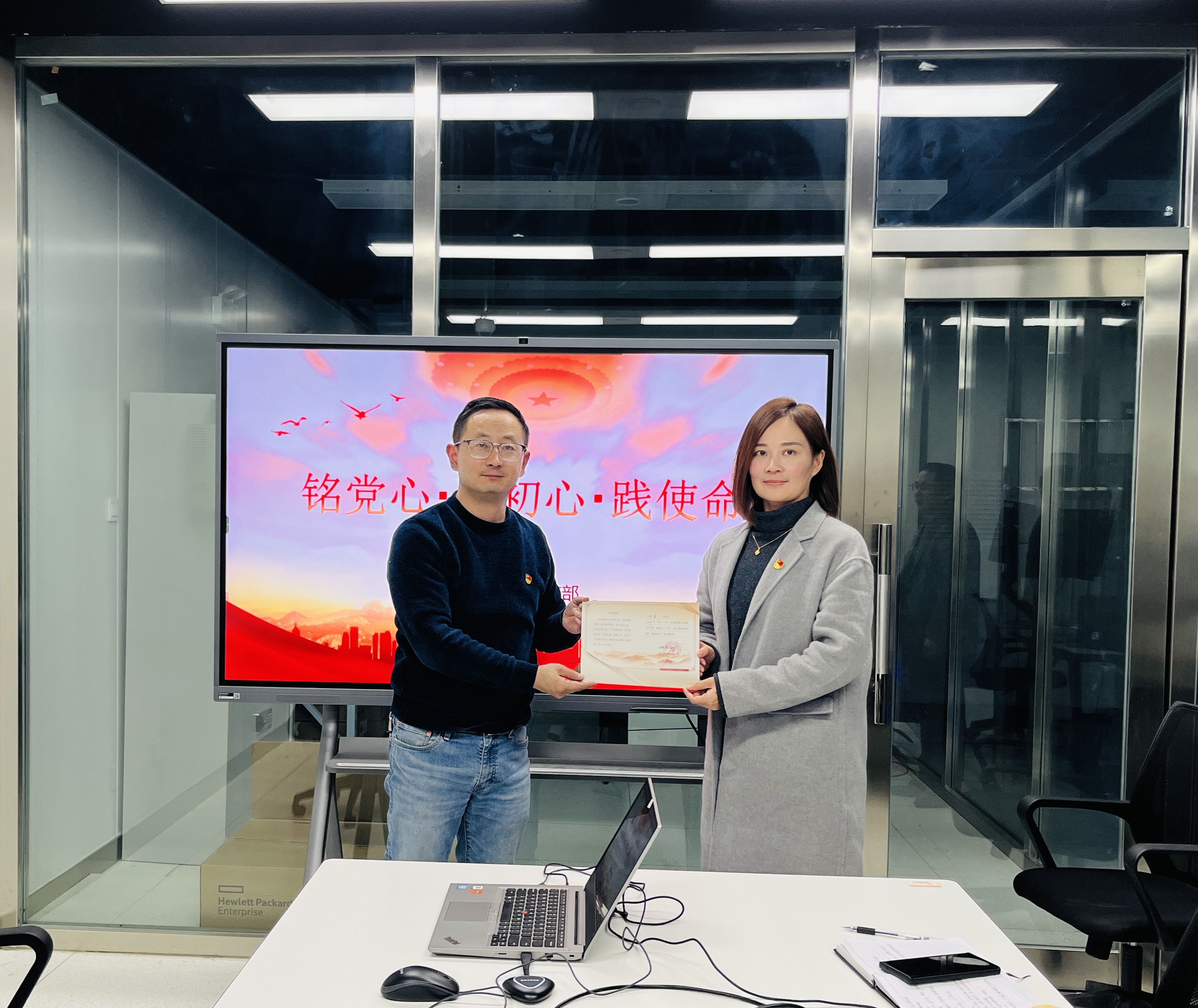 随后,支部为党员叶秀举行政治生日卡颁发仪式。支部书记卜天然在仪式上首先回顾了她入党以来的成长轨迹与履职贡献,对其长期以来的辛勤付出和示范引领作用表示感谢。叶秀在发言中表示,将始终牢记入党誓词,坚守初心使命,在今后工作中持续发挥党员先锋模范作用,为职业教育事业发展贡献全部的力量。