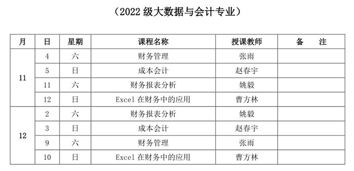 继续教育与社会培训学院2023学年秋季学期面授课程表