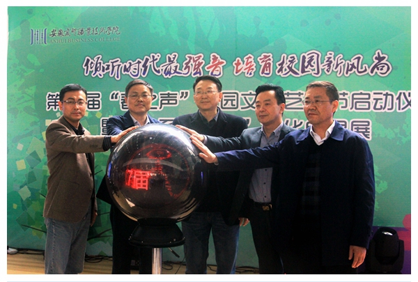 启动仪式上,党委副书记、纪委书记朱光应作了热情洋溢的致辞。他指出“春之声”校园文化艺术节作为学校人才培养的重要载体,多年来“春之声”校园文化艺术节在坚定师生理想信念、打造文化媒体阵地、推进中华优秀传统文化、培育社会主义核心价值观、增强大学生社会责任感和创新创业能力、提升大学生文体素质和实践能力等方面取得了突出的成绩,已成为学校校园文化活动的重要品牌之一。建议本届艺术节要积极创新活动形式,活动内容要贴近师生,以“春之声”艺术节系列活动为契机,结合各系部自身特点,形成一批特色鲜明、积极向上的系部文化品牌,同时做好宣传和总结工作。致辞结束后,学校领导共同开启仪式启动球,第十七届“春之声”文化艺术节正式启动。