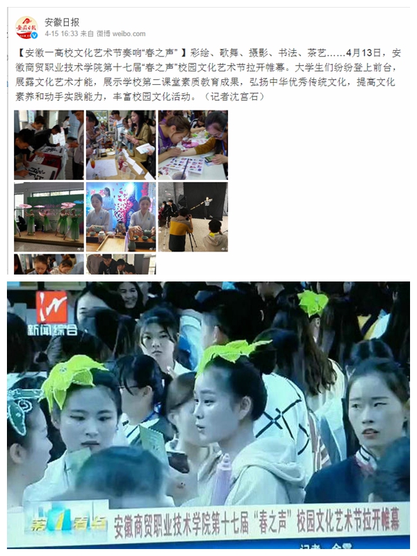 本次艺术节启动仪式暨文化成果展正值学校2018年分类考试招生之际,学校的青年志愿者在热情服务的同时,还积极邀请考生及家长走进展览现场,通过另外一个视角感受商贸的办学特色和育人成果。考生和家长在展区认真咨询,纷纷为展览点赞,反响良好。本次活动为社会与学校搭建了良好的互动平台,活动得到了芜湖新闻频道等媒体的报道和关注,有力地提升了学校的知名度和影响力。