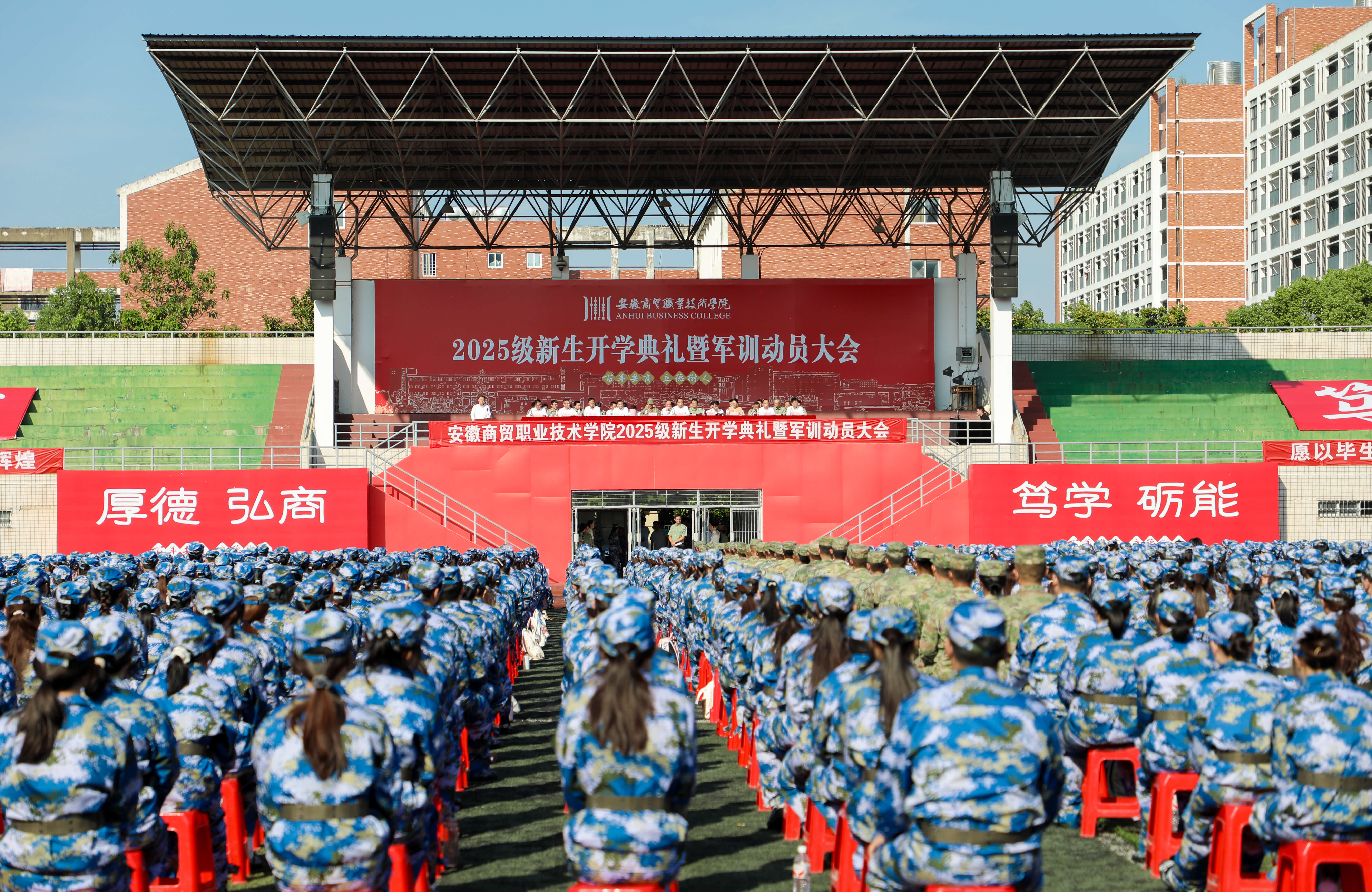 9月19日上午,安徽商贸职业技术学院2025级新生开学典礼暨军训动员大会在学校运动场举行。2620名新生齐聚校园,以青春之名,开启大学生活新篇章。