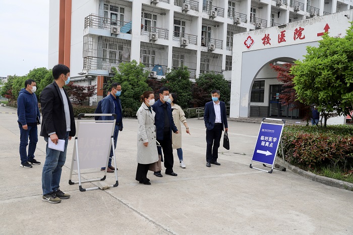 4月27日,省教育厅2020年春季学期返校条件查验工作专家组成员皖南医学院公共卫生学院院长黄月娥、麻醉学院副院长马同军、教务处副处长赵劲松一行通过听取汇报、查阅资料、实地查看等形式对我校返校复课条件进行查验。校党委书记、校疫情防控工作领导小组组长章顺来,校党委副书记、校长、校疫情防控工作领导小组组长李忠,校党委委员、总会计师、校疫情防控工作领导小组副组长王炜接待了专家组一行并陪同查验。