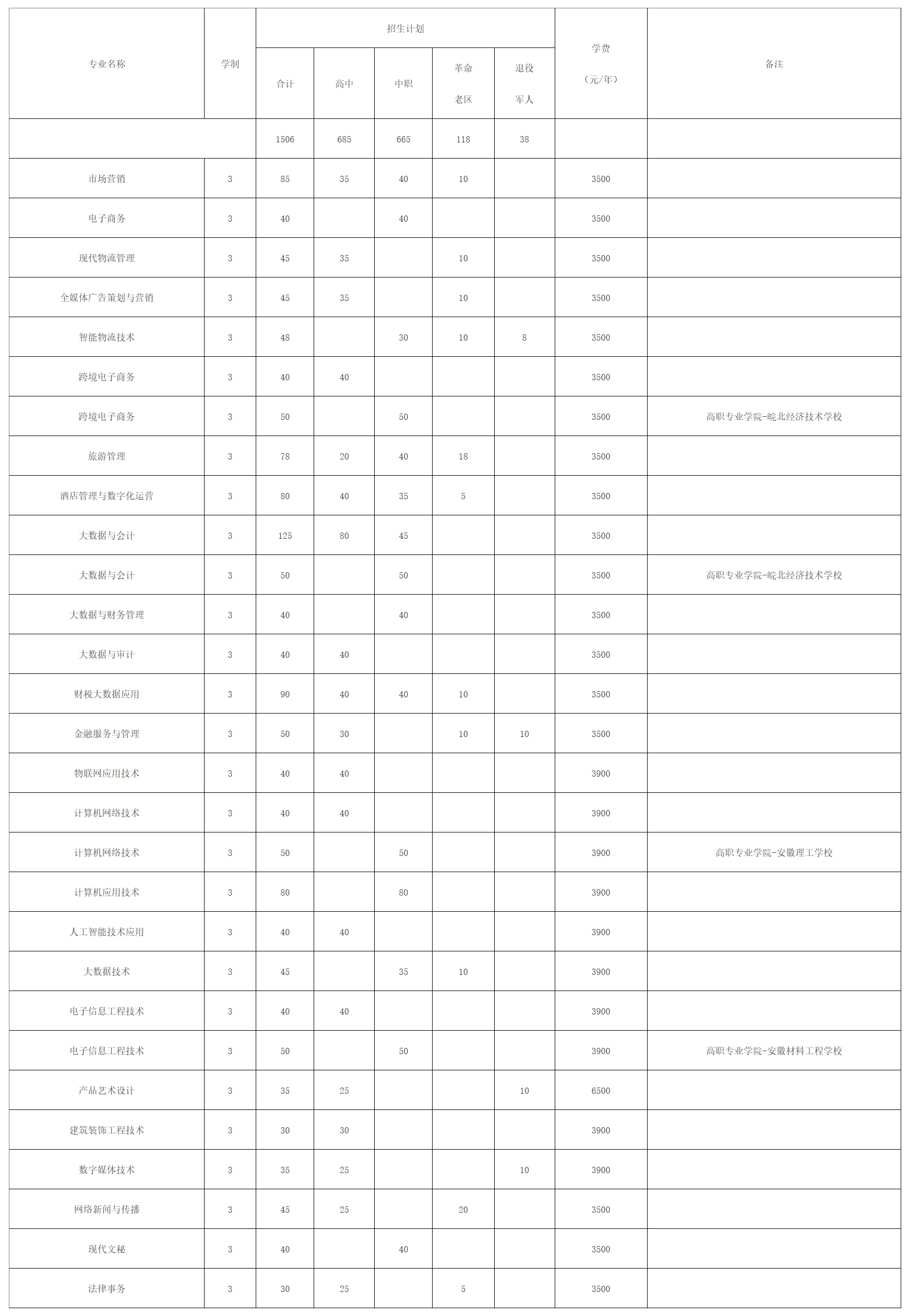 4.最终招生专业及计划以安徽省教育厅下达为准。