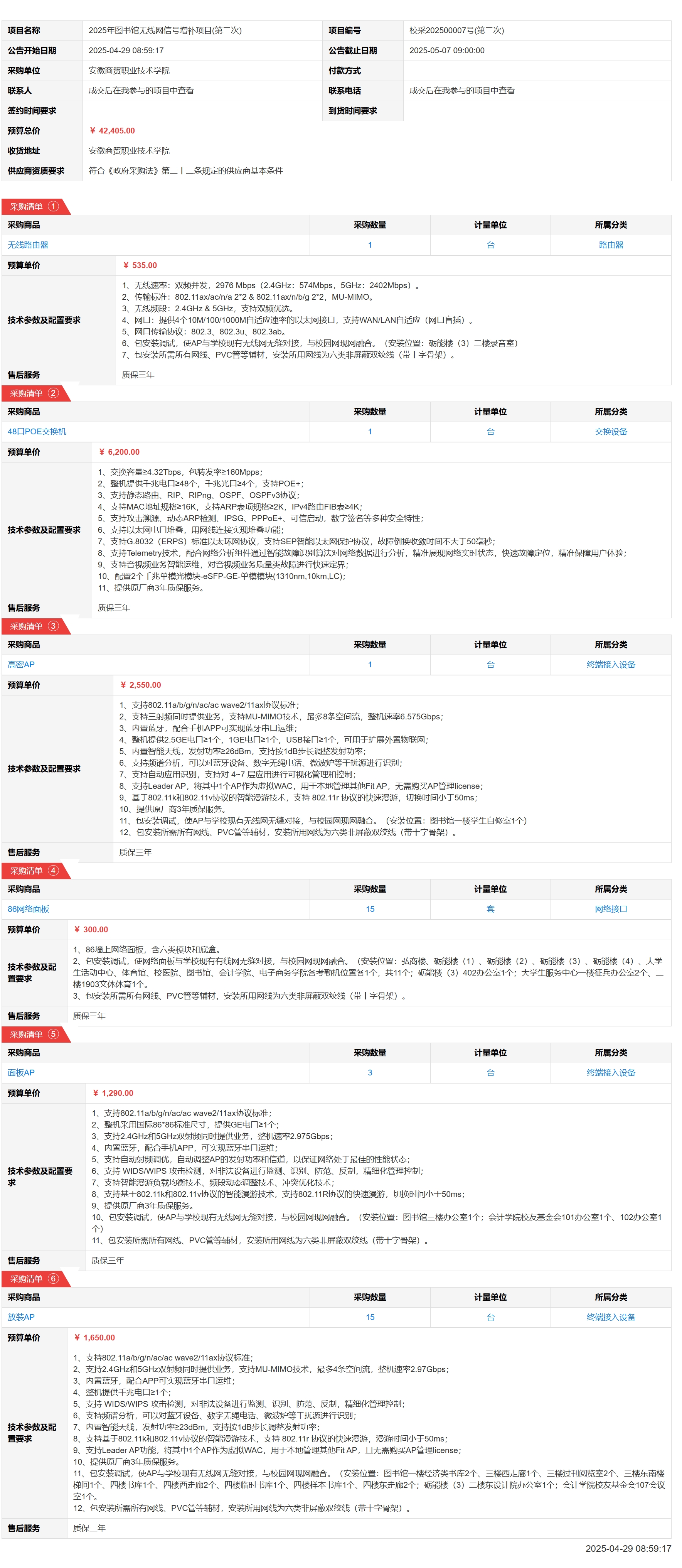 2025年图书馆无线网信号增补项目(第二次)(校采202500007号(第二次))采购公告