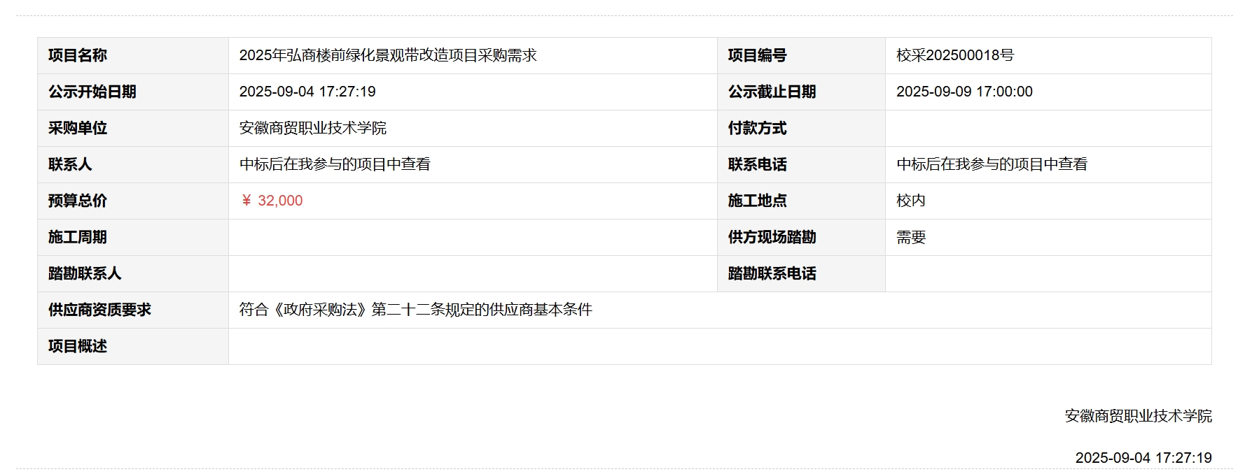 2025年弘商楼前绿化景观带改造项目采购需求(校采202500018号)采购公告