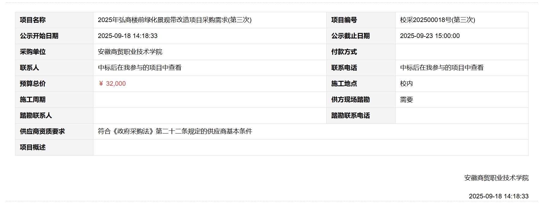 2025年弘商楼前绿化景观带改造项目采购需求(第三次)(校采202500018号(第三次))采购公告