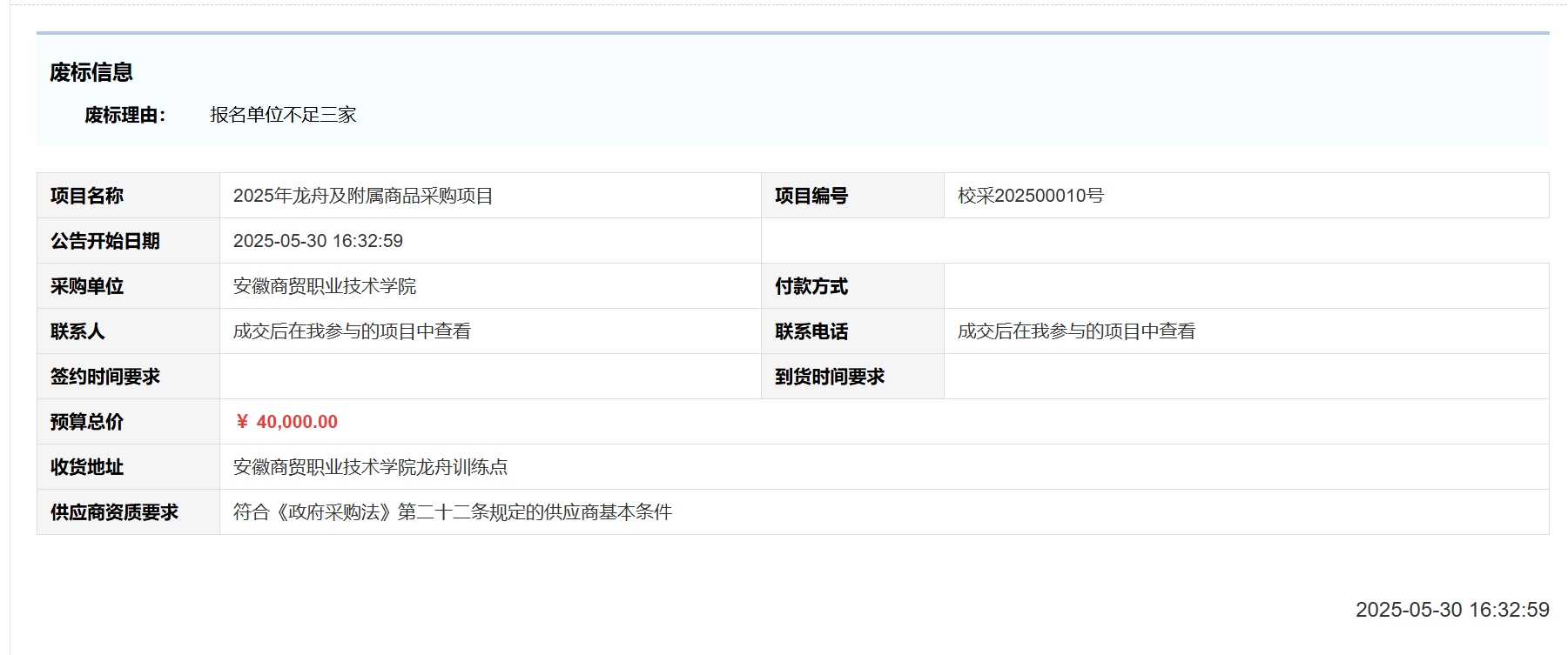 2025年龙舟及附属商品采购项目(校采202500010号)废标公告