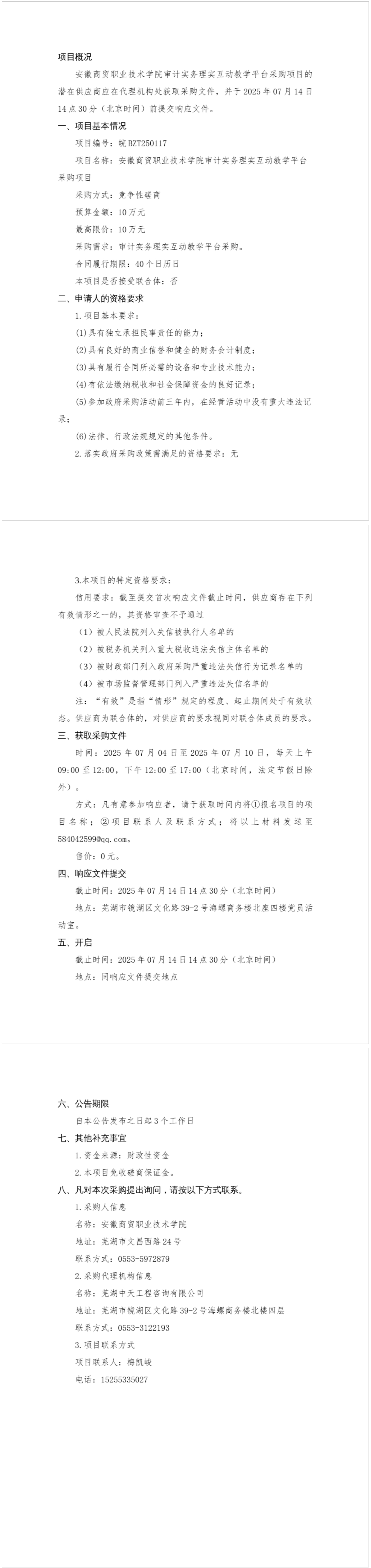 安徽商贸职业技术学院审计实务理实互动教学平台采购项目竞争性磋商公告