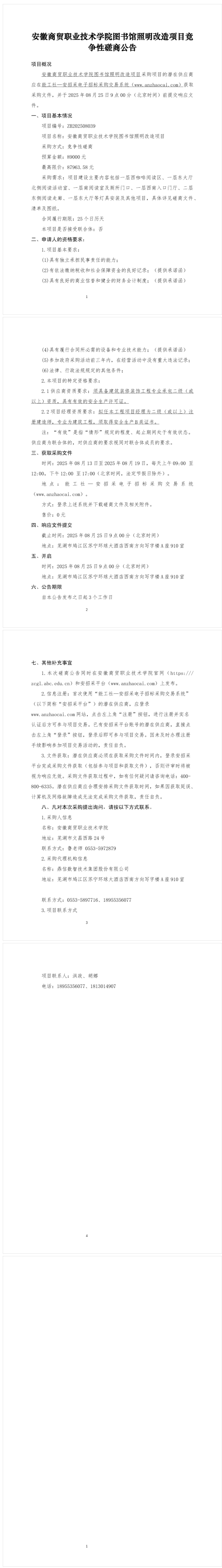安徽商贸职业技术学院图书馆照明改造项目竞争性磋商公告