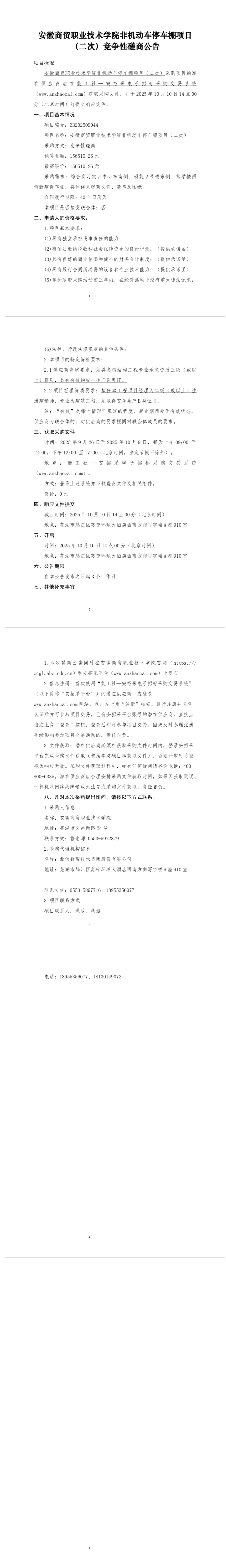 安徽商贸职业技术学院非机动车停车棚项目(二次)竞争性磋商公告