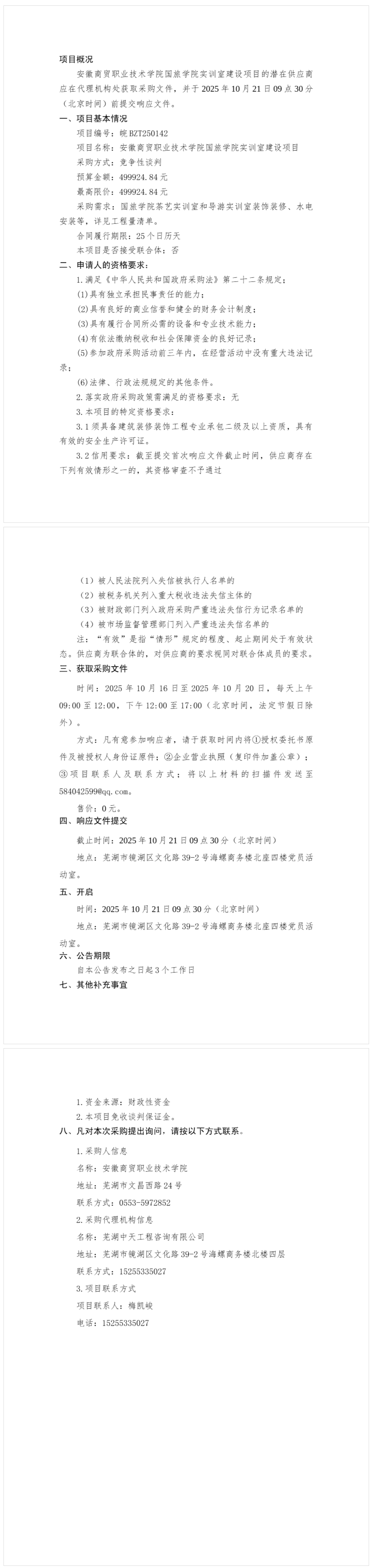 安徽商贸职业技术学院国旅学院实训室建设项目竞争性谈判公告