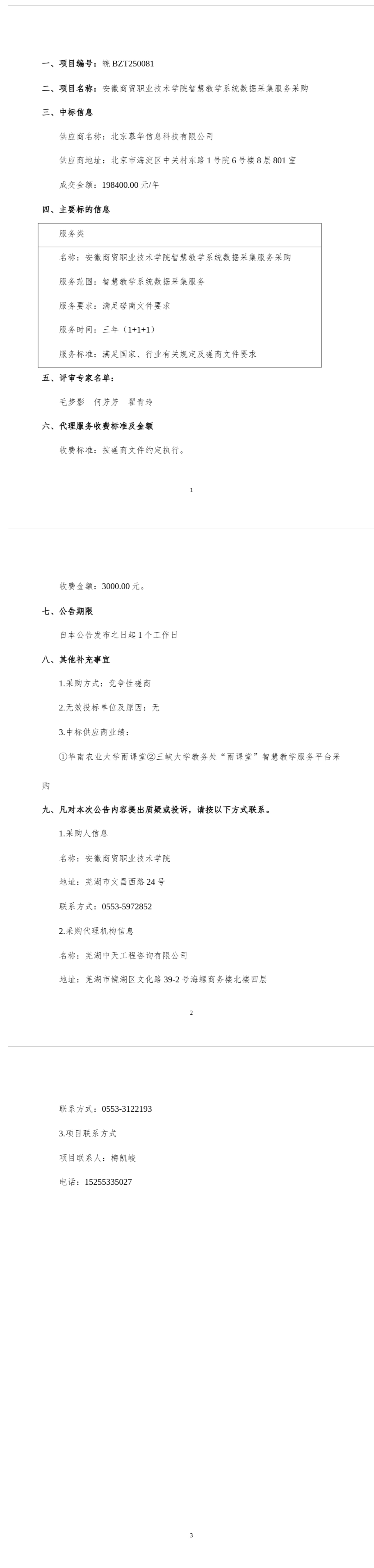 安徽商贸职业技术学院智慧教学系统数据采集服务采购成交结果公告