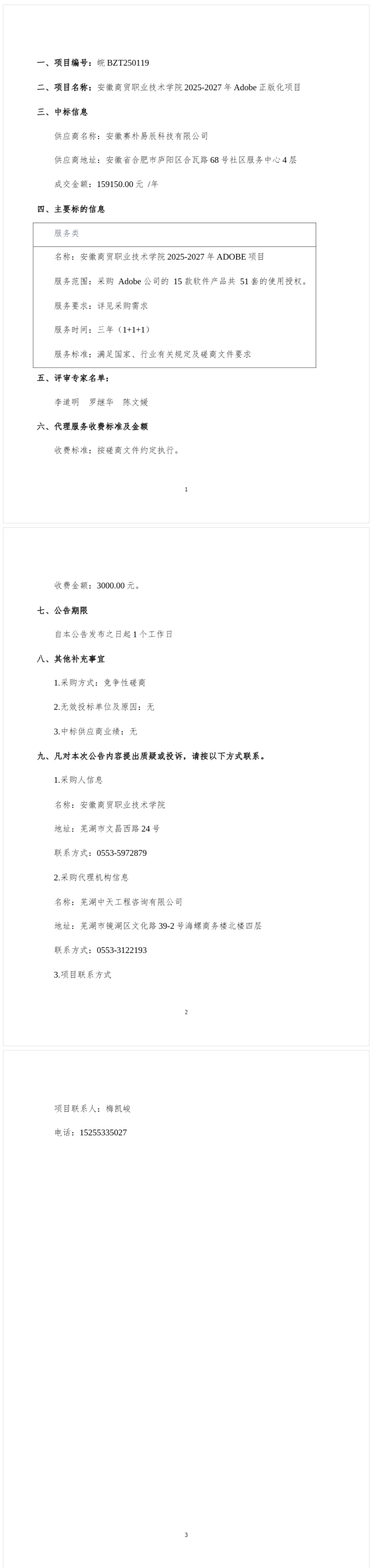 安徽商贸职业技术学院2025-2027年Adobe正版化项目成交结果公告