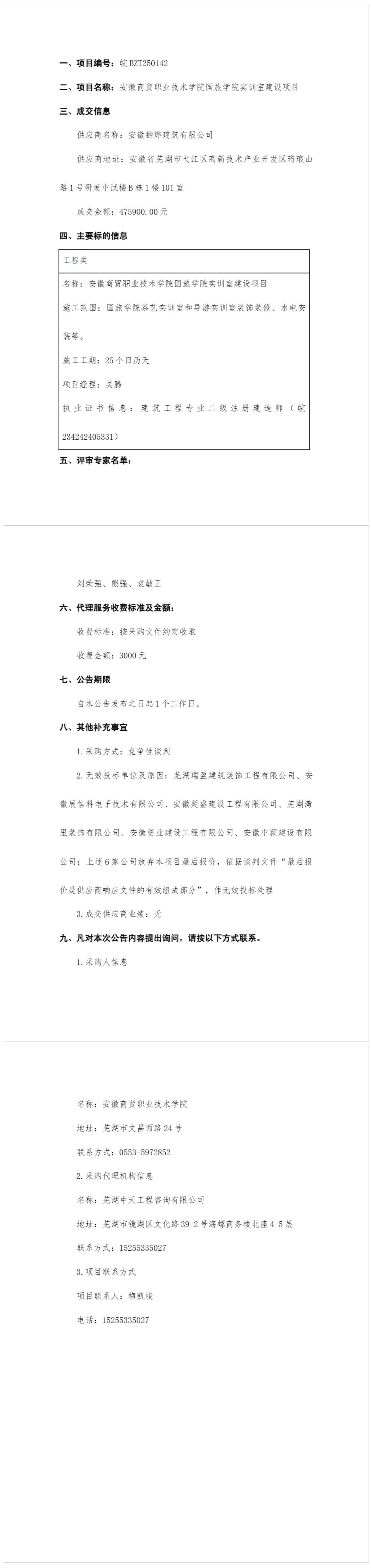 安徽商贸职业技术学院国旅学院实训室建设项目成交结果公告