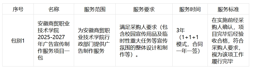 安徽商贸职业技术学院2025-2027年广告宣传制作服务项目一包