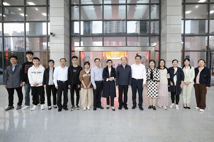 走出校史展览馆,钱桂仑一行与学校青年教师代表和全国职业技能大赛获奖学生亲切会面,并与师生合影留念。