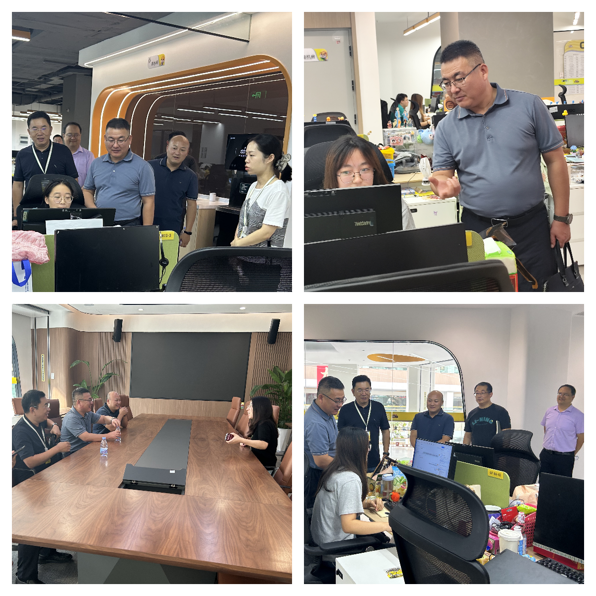 黄义兵一行首先来到三只松鼠天猫运营中心,实地察看同学们的工作环境,详细了解岗位内容与实习进展。鼠饶饶介绍,经过系统的岗前培训与“老带新”机制,同学们已能独立承担运营、客服、数据分析等岗位职责,表现获得部门的一致好评。黄义兵对同学们展现出的专业素养与职业风貌给予充分肯定,他强调把课堂搬进企业,把项目引入教学,让学生在真实商战中淬炼本领,正是职业教育产教融合的应有之义。