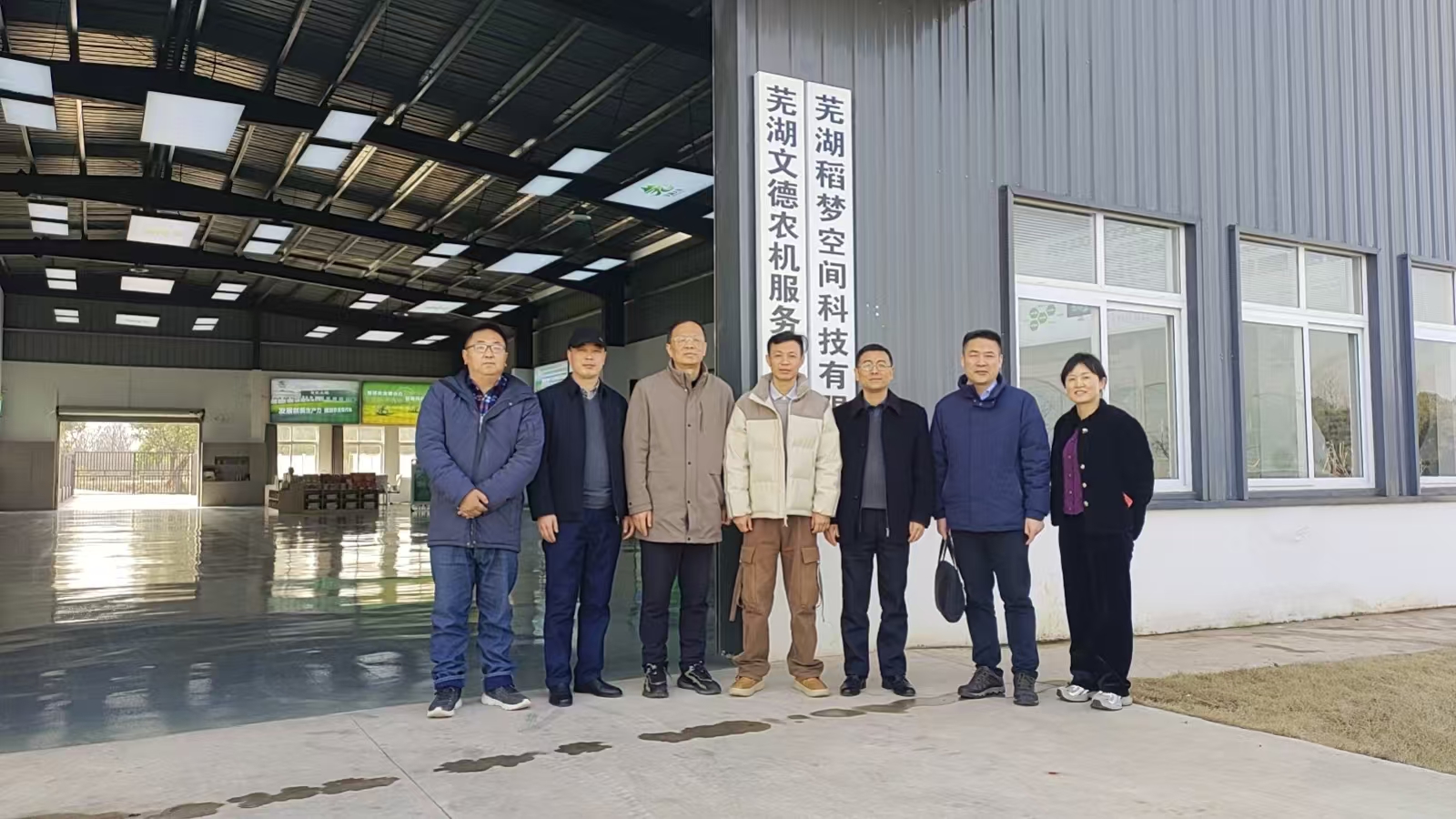 王炜一行首先参观了企业展厅,详细了解了公司的发展历程、业务板块及在农业现代化、智慧化方面取得的成果,并实地考察了智能化育秧室与标准化农田。随后,在座谈会上,公司总经理、我校校友姚腾飞介绍了芜湖稻梦空间科技有限公司作为现代化综合农事服务中心的发展情况。公司以数字农业信息化技术为核心,推动“芜湖大米”走向高端化、品牌化、绿色化与智能化,并通过整合“产业集群+科研院所+公司+合作社+农户”多方资源,搭建智能化农事服务管理平台,深化农事服务中心与农业数字化融合,致力于打通农业数字化服务的“最后一公里”。