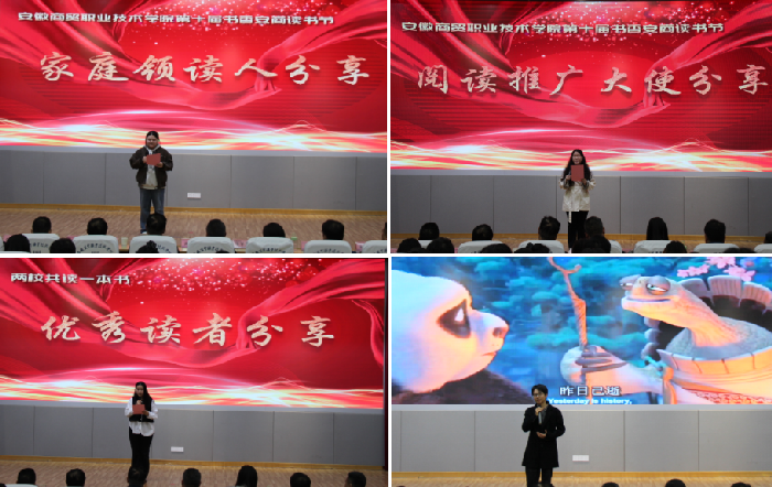 典礼上,安徽机电职业技术学院学生代表许慧梓分享了“两校共读一本书”的感悟,讲述了两校学子以书为桥、心灵相通的动人故事;学生阅读推广人程佳盈、家庭领读人代表常雪银结合自身经历,讲述阅读成长与书香传家的真切体会;省赛一等奖获得者方泽焘带来的英文配音表演《功夫熊猫》,以声传情,将现场气氛推向高潮。